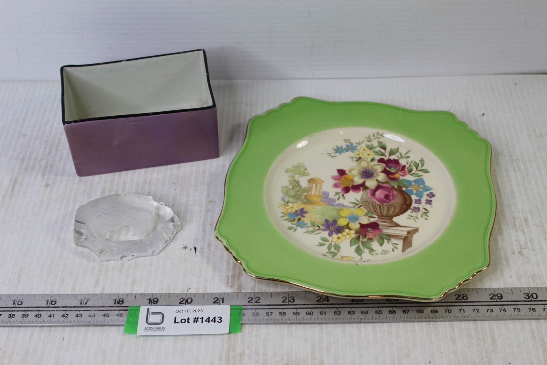 Tunstall Dish - Glass Etched Eagles Head - Vintage Royal Winton Plate