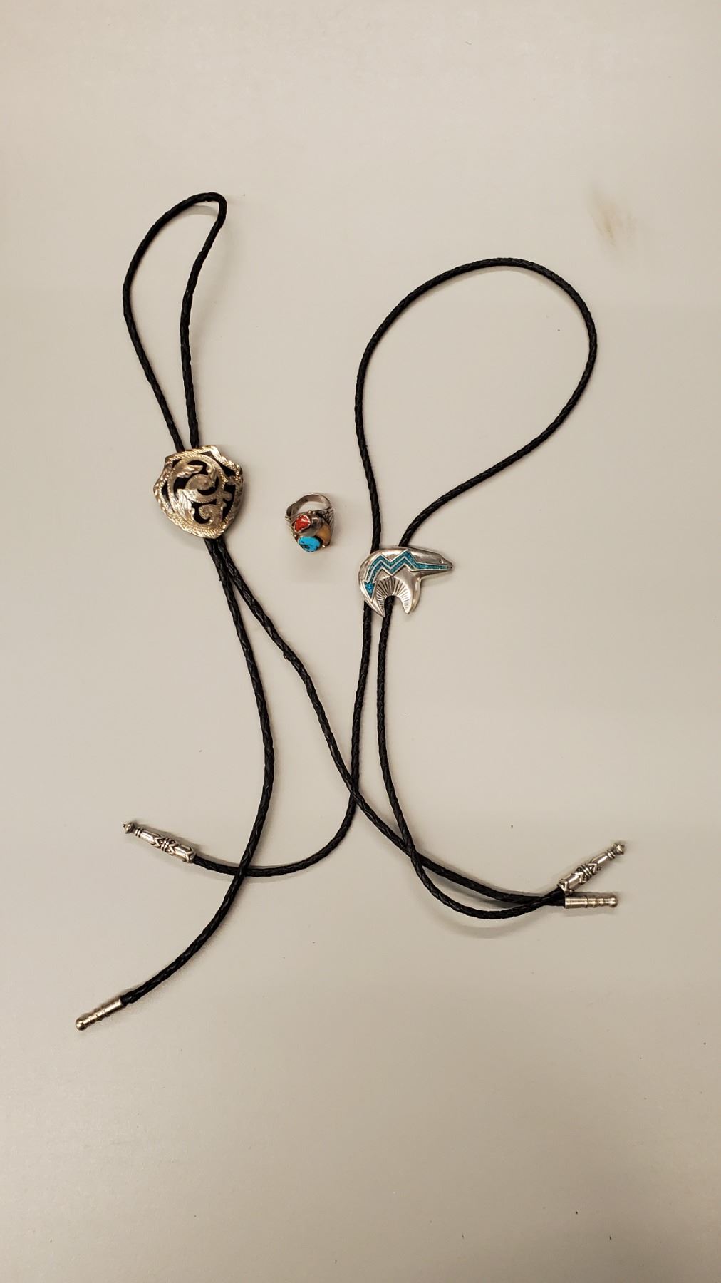 Turquoise Silver Bear Claw Navajo Ring Bolo Ties With