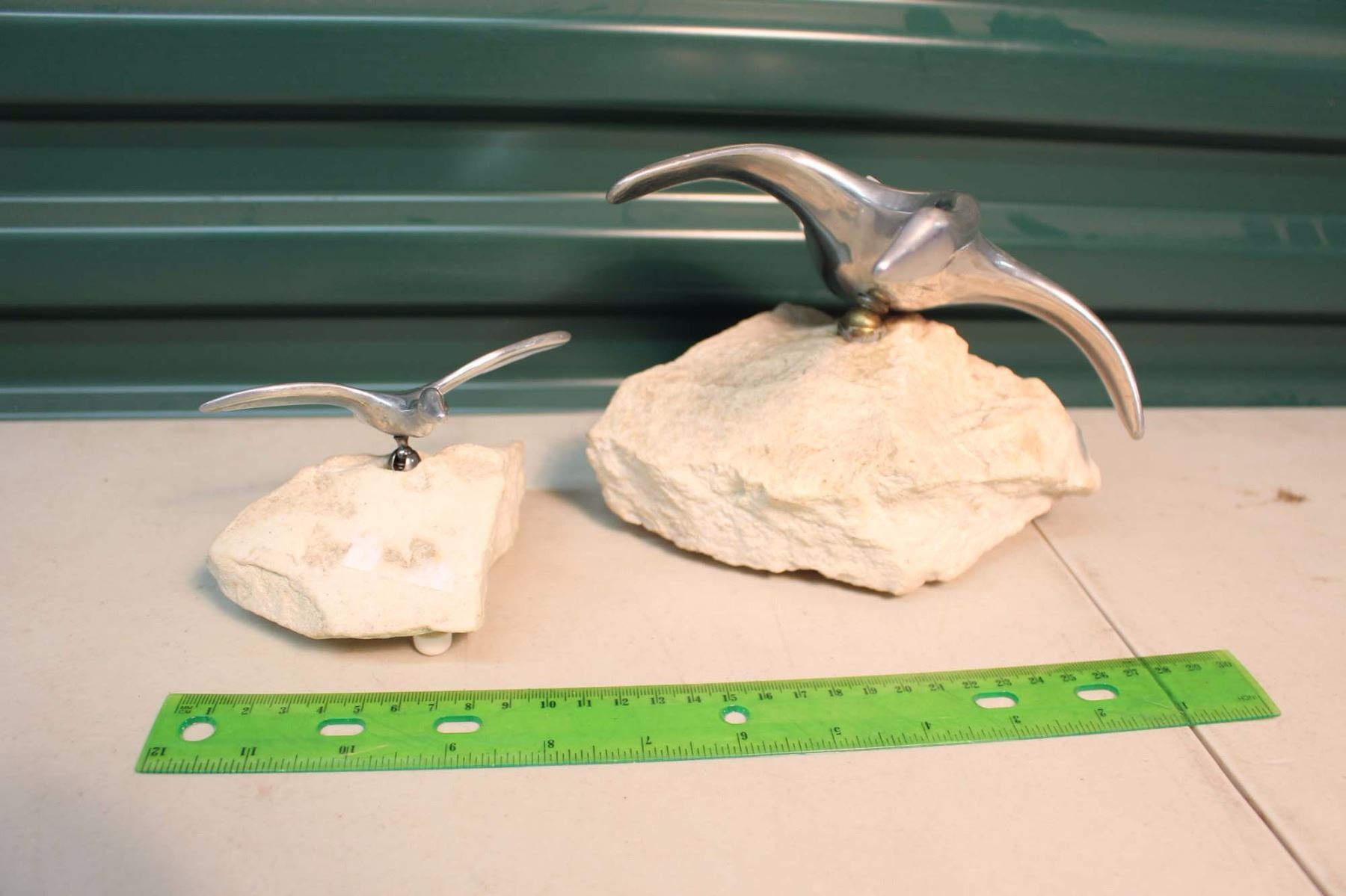 Two Swan Decorative Pieces (Aluminum on Stone)