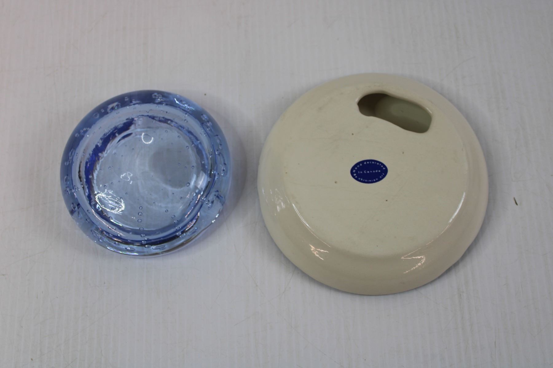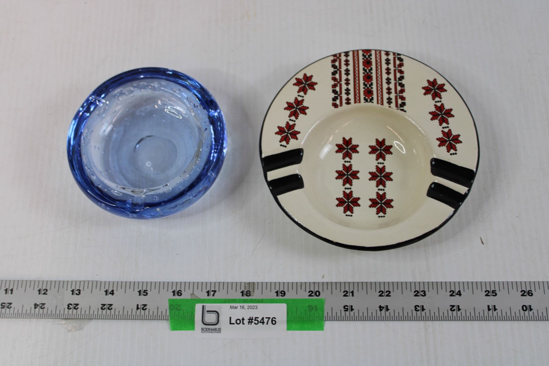Ukrainian Ashtray and Blue Art Glass Ashtray