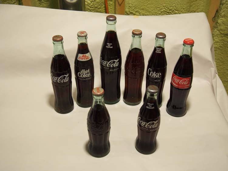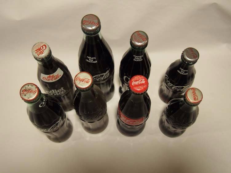 Unopened Antique Glass Soda Bottles (8) (Coca-Cola, Coke, Diet Coke)