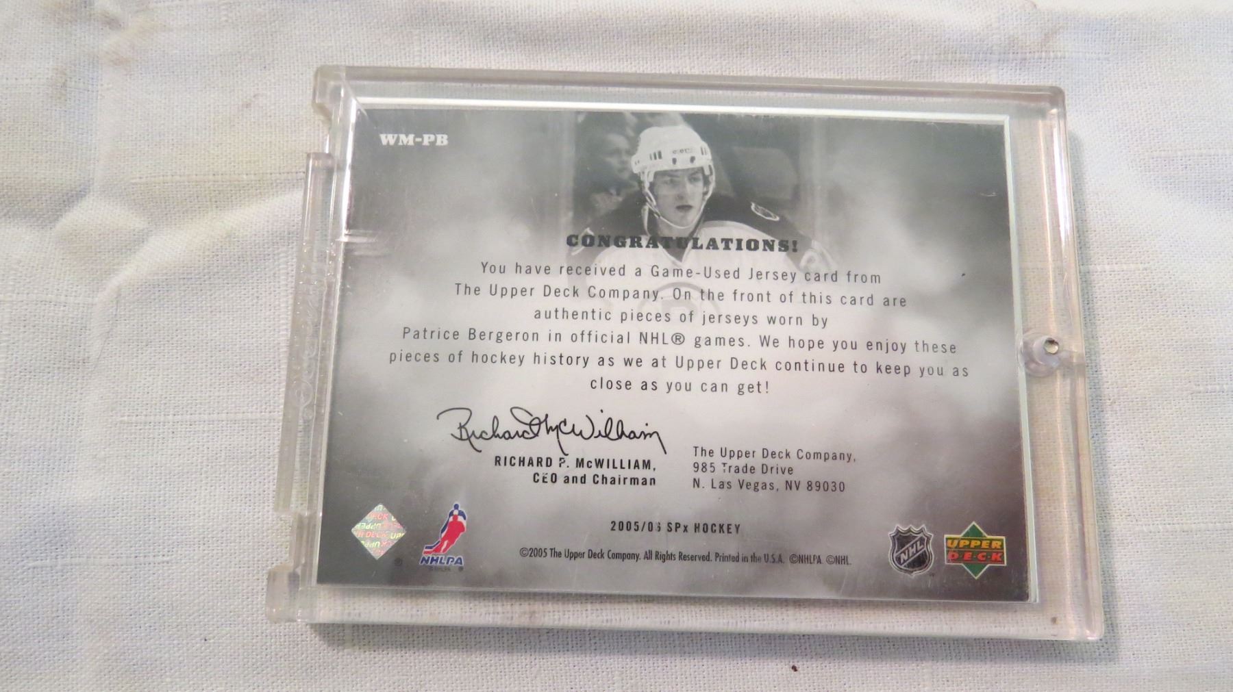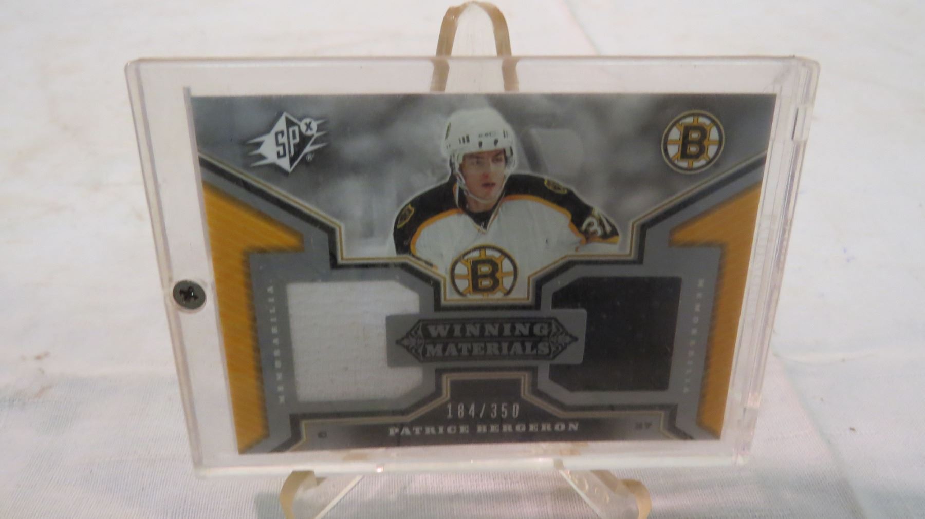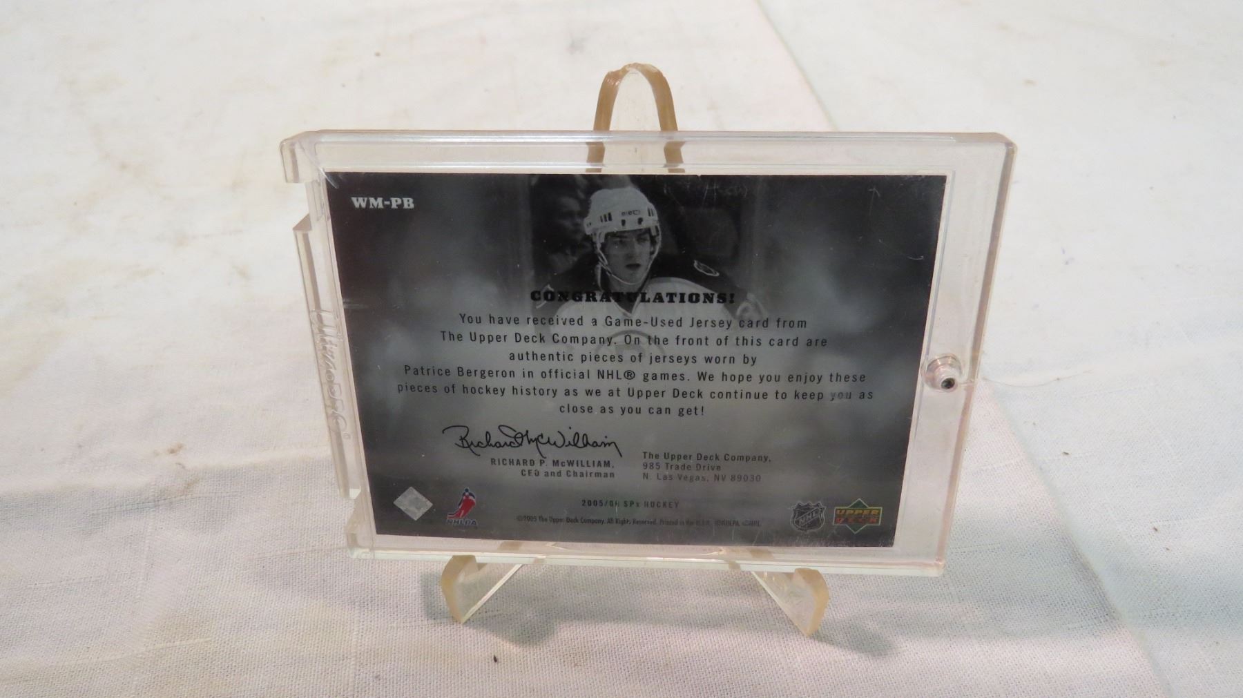 Upper Deck 2005-06 SPX Bergeron Hockey card + stand