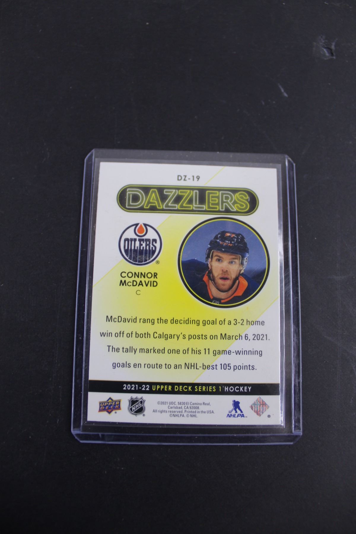 Upper Deck "Dazzler" Connor McDavid 2021 NHL Collector Card