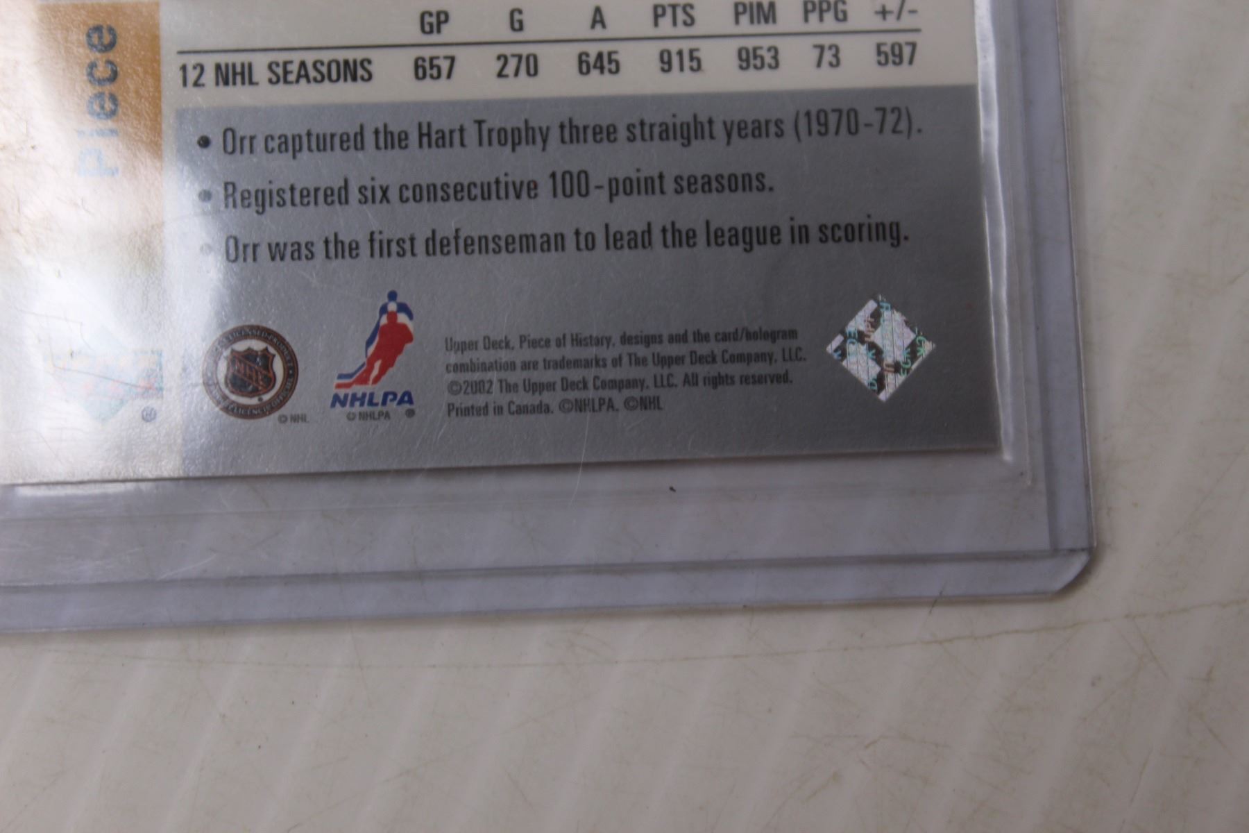 Upper Deck Tribute to Bobby Orr 2002
