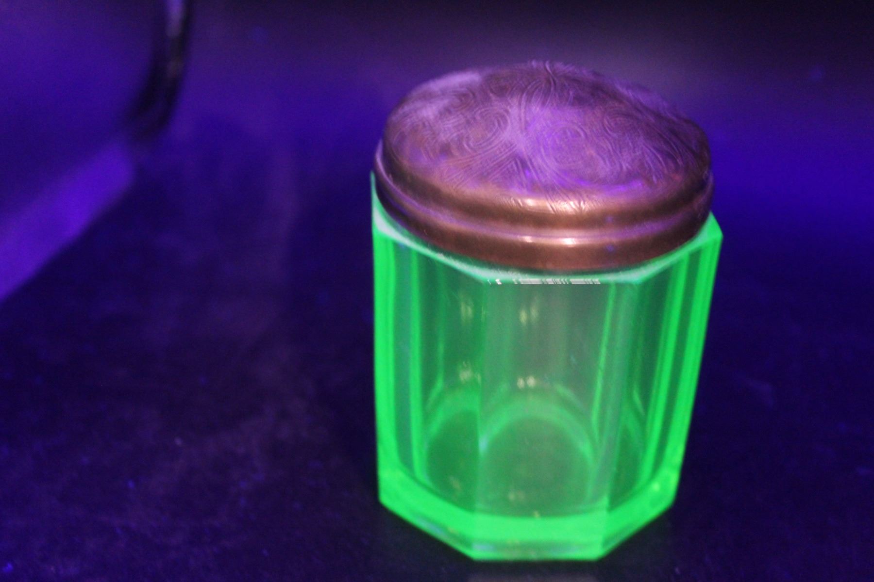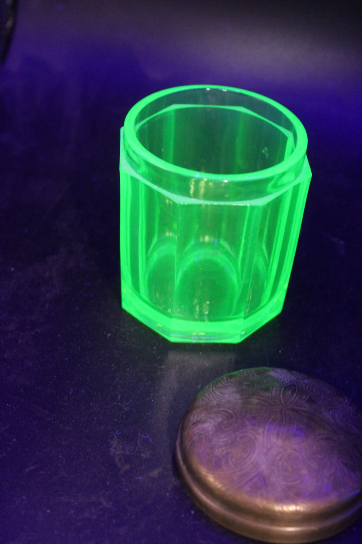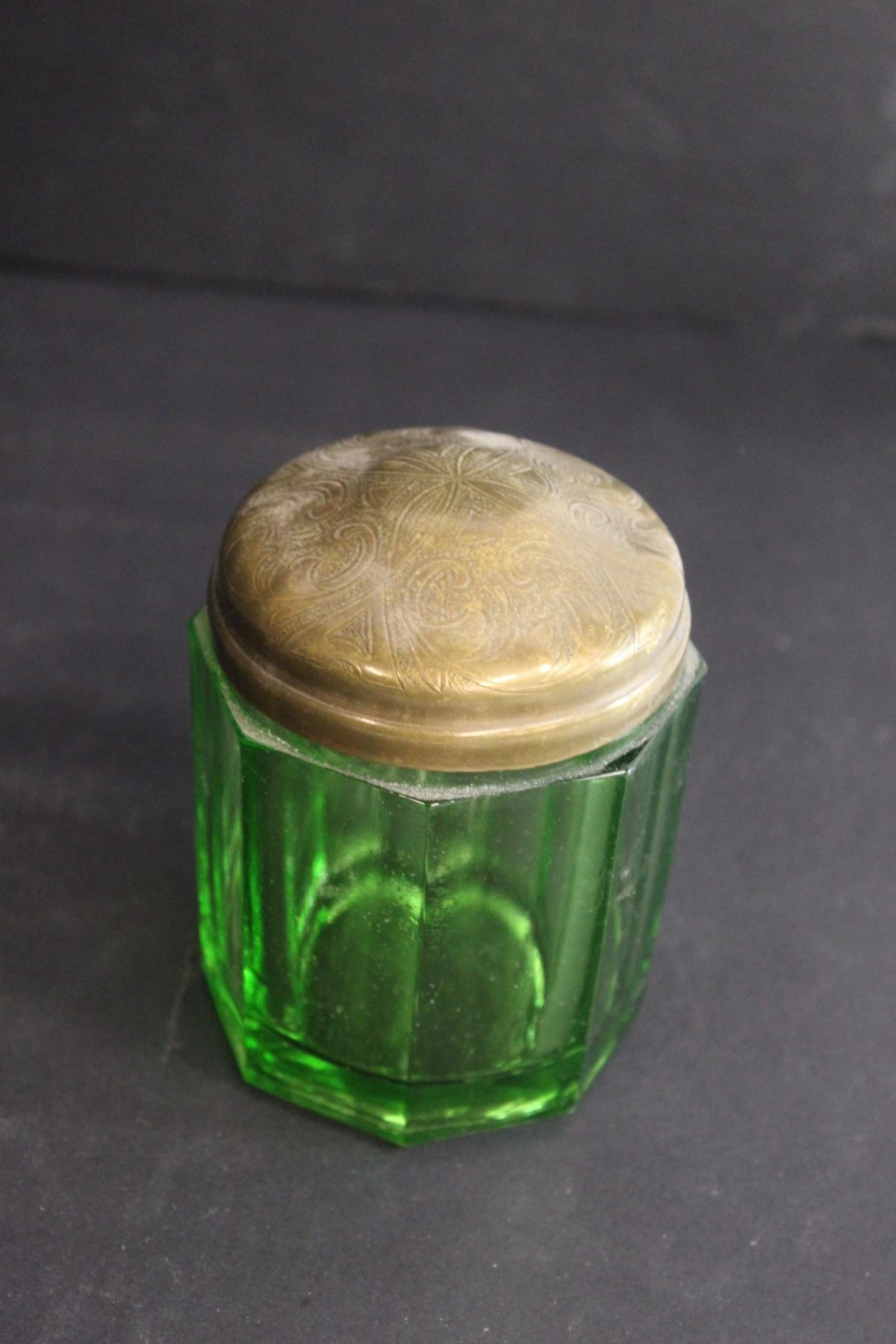 Uranium Green Glass Sugar Cup w/Lid - 4" Tall