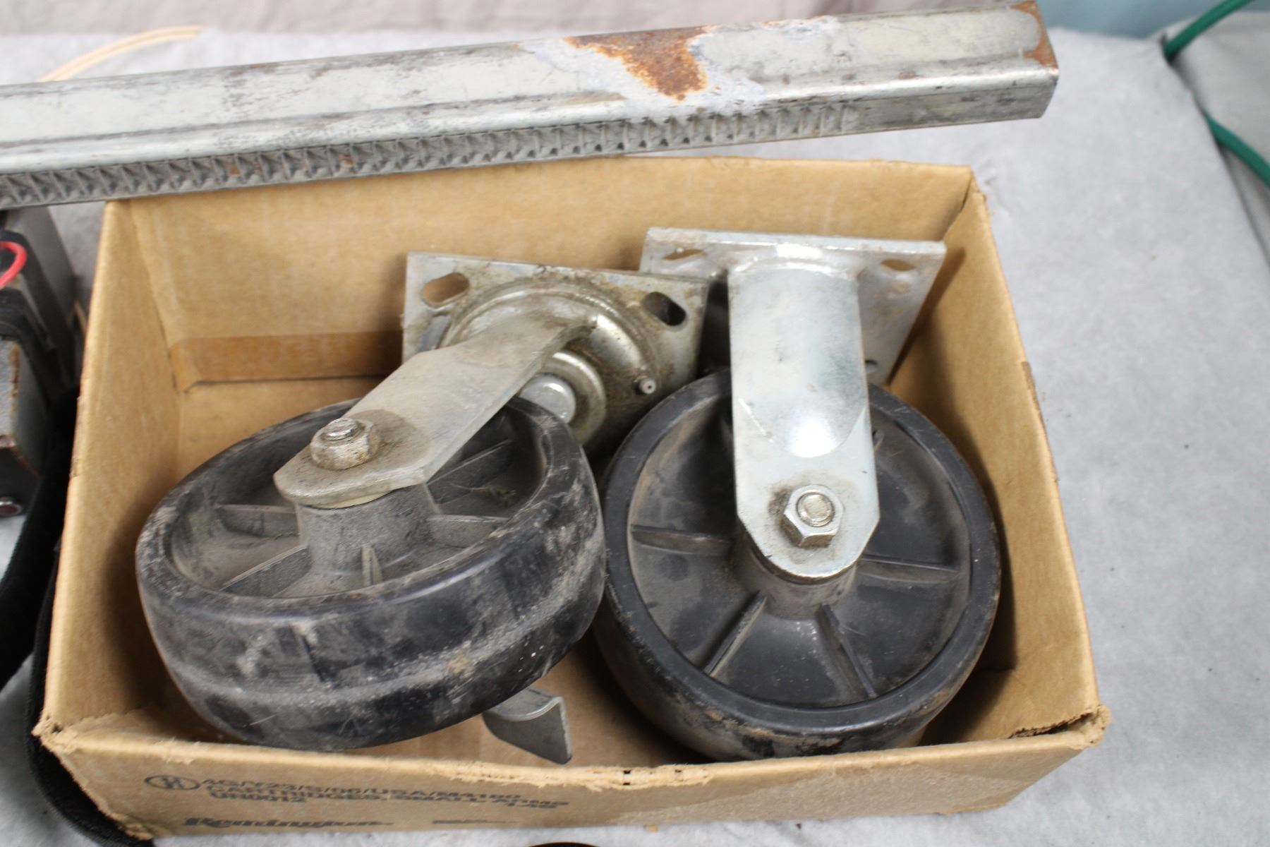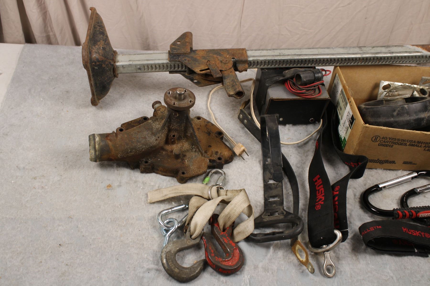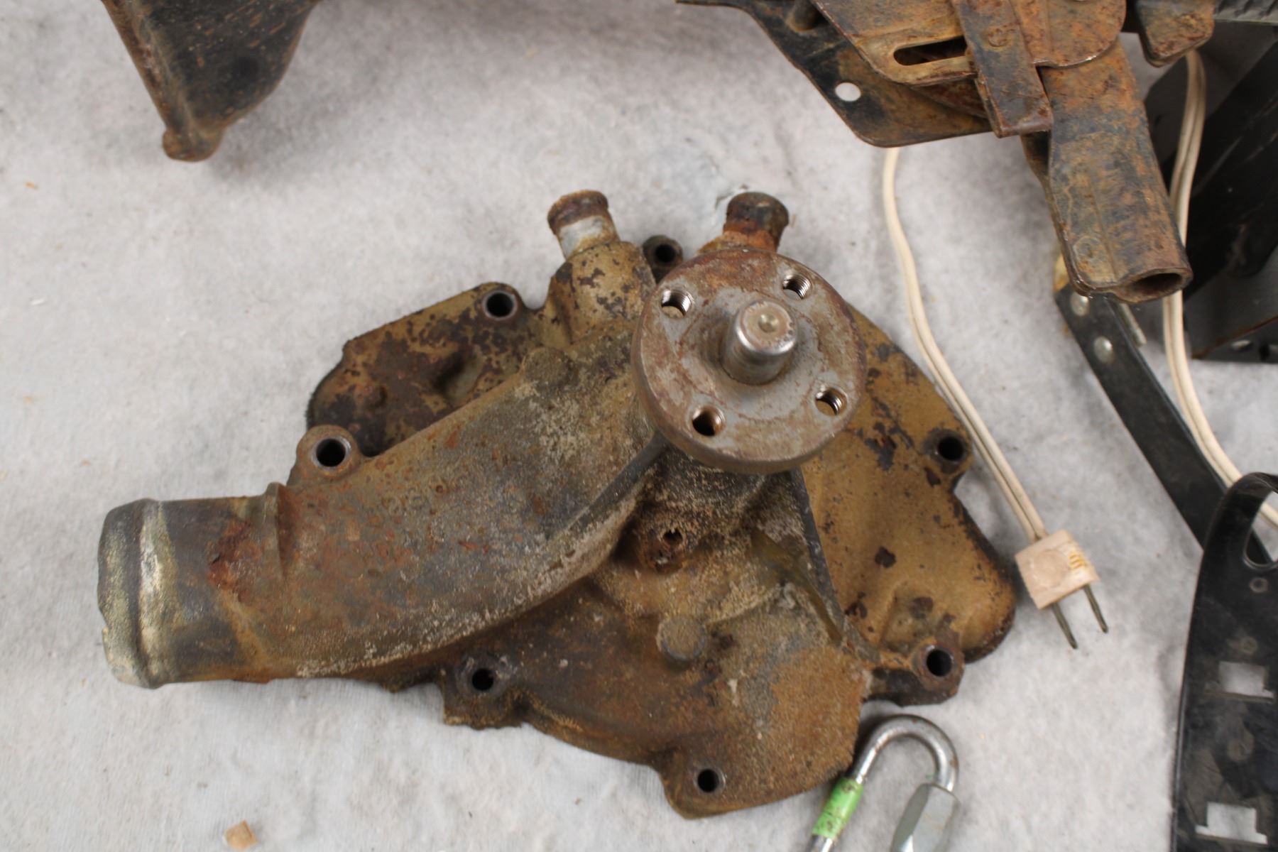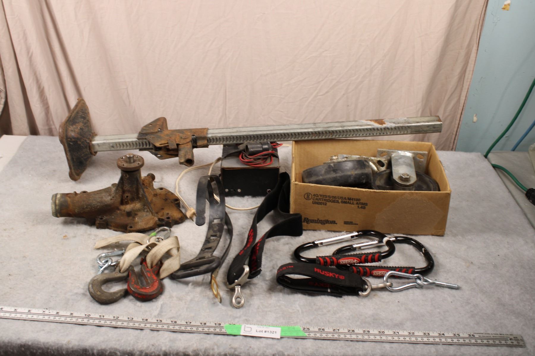 69 Cutlass 350 used water pump + tire jack, Castor Wheels - Husky carabiner clips, misc