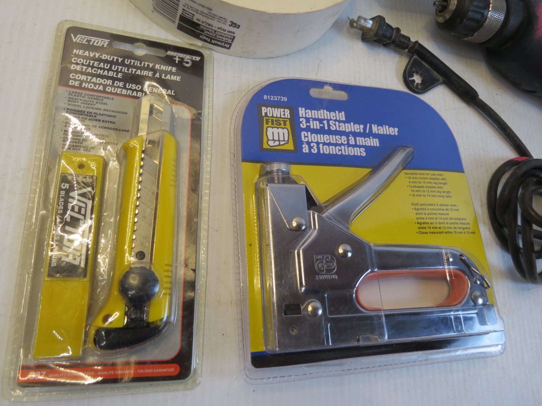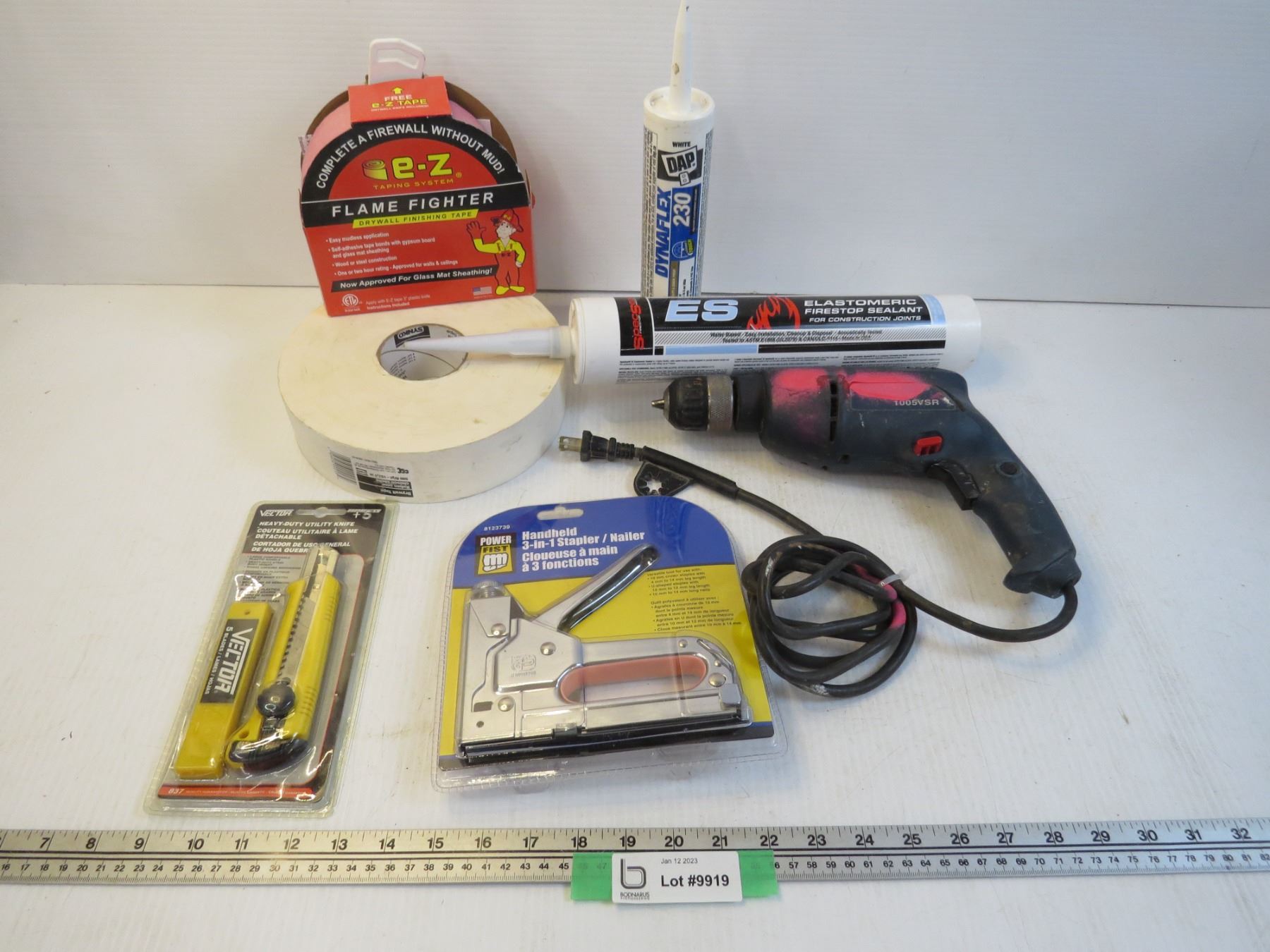 Utility Knife - Drywall Tape - Stapler - Bosch Drill (works) - Caulking
