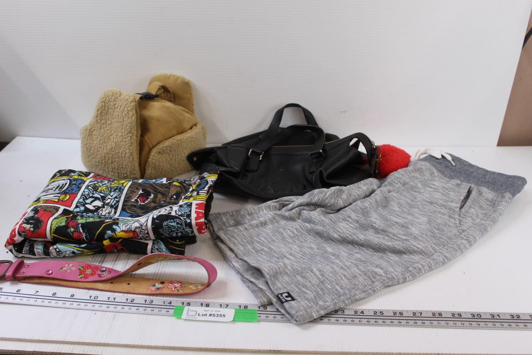 Uzzi Shorts - Size Small, DKNY Purse, Star Wars Pillow Case, Girls Belt, Fuzzy Toque