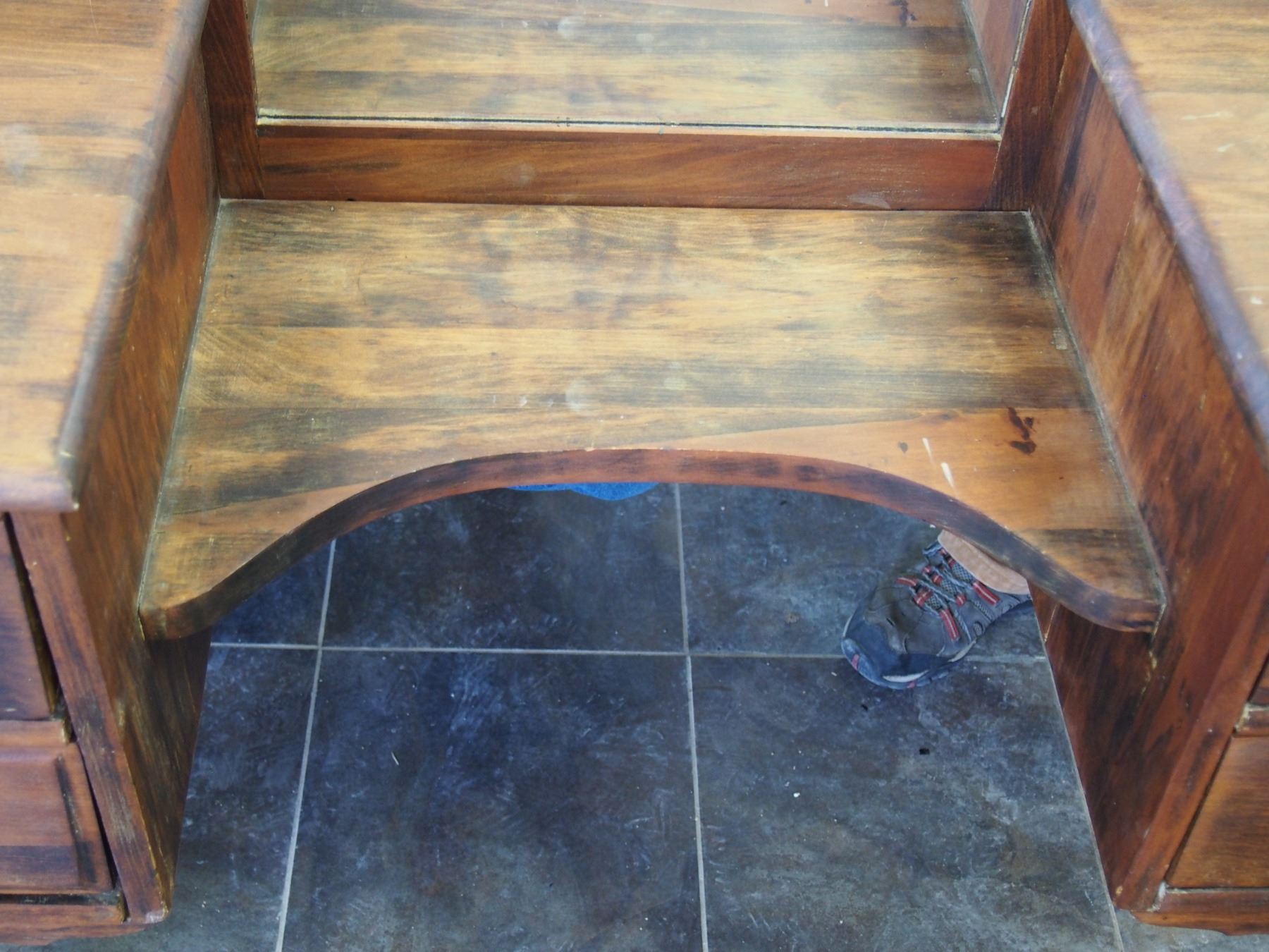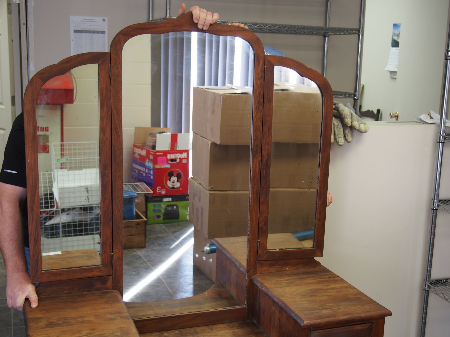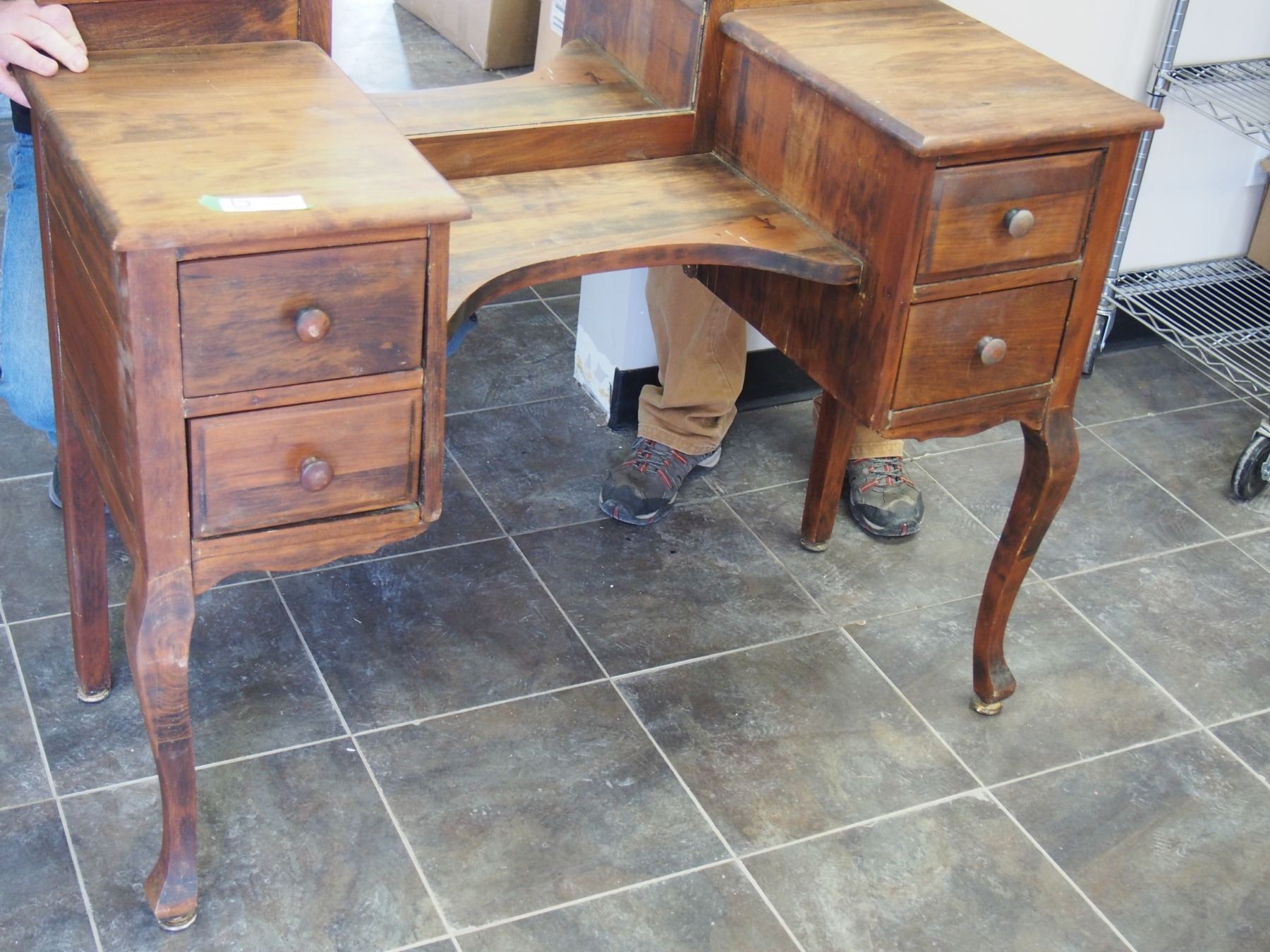 VINTAGE MAKEUP STAND WITH 3 WAY MIRROR 42 IN TALL X 17 IN WIDE STAND IS 31 IN TALL MIRROR 42 IN TALL TOTAL HEIGHT 66 IN