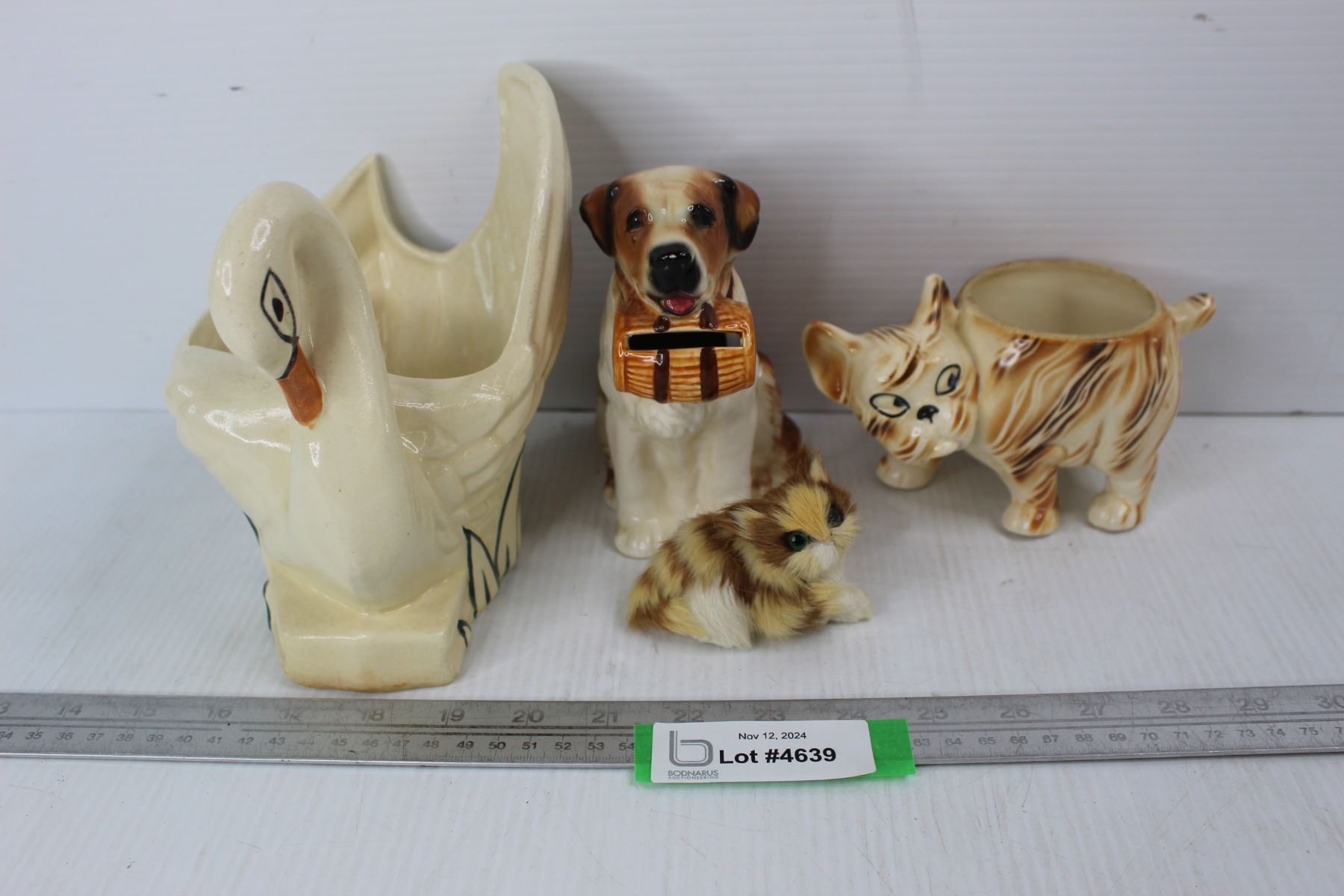 Various Animal/ Pet Ornament, St Bernald Ceramic Piggy Bank, Swan Vase, Misc.