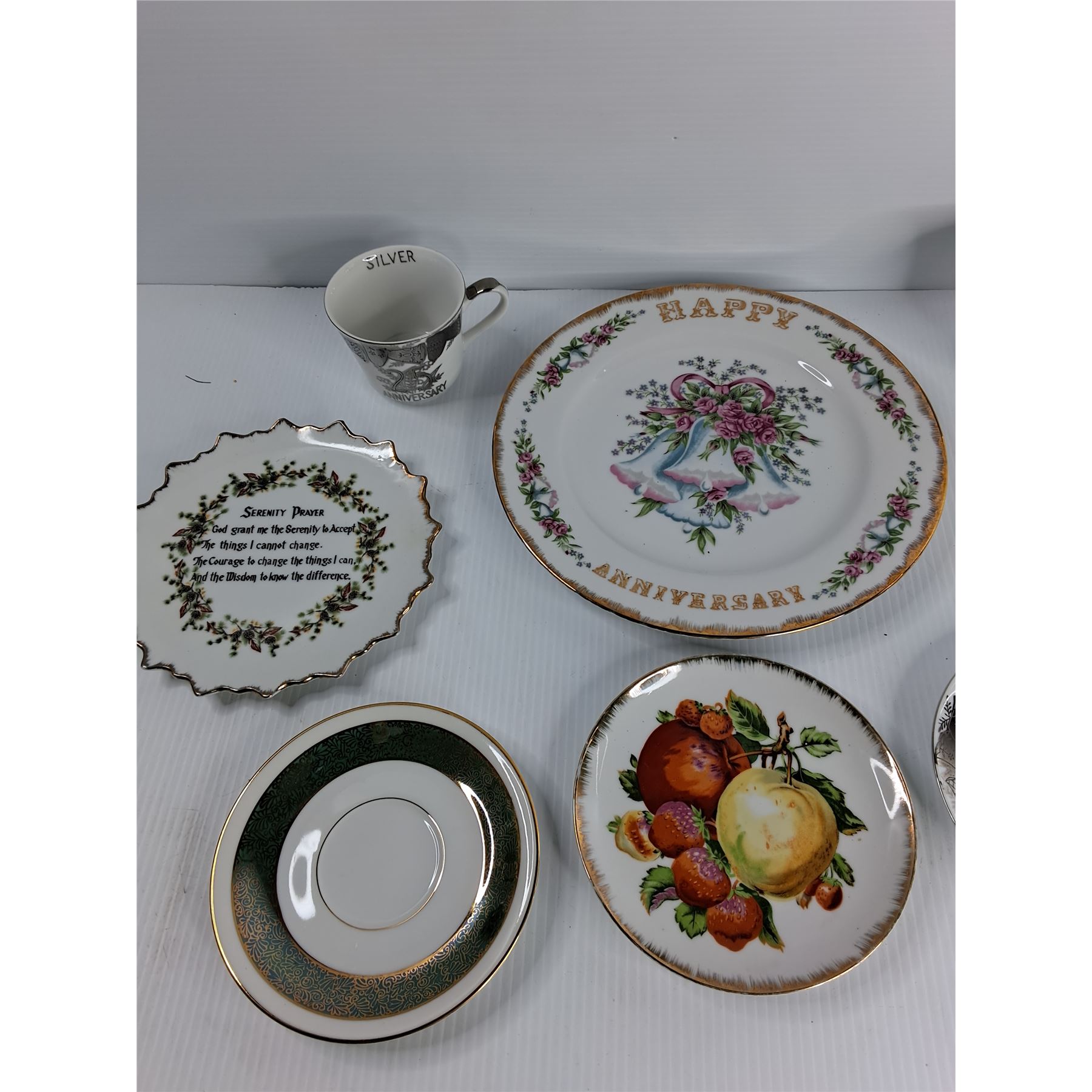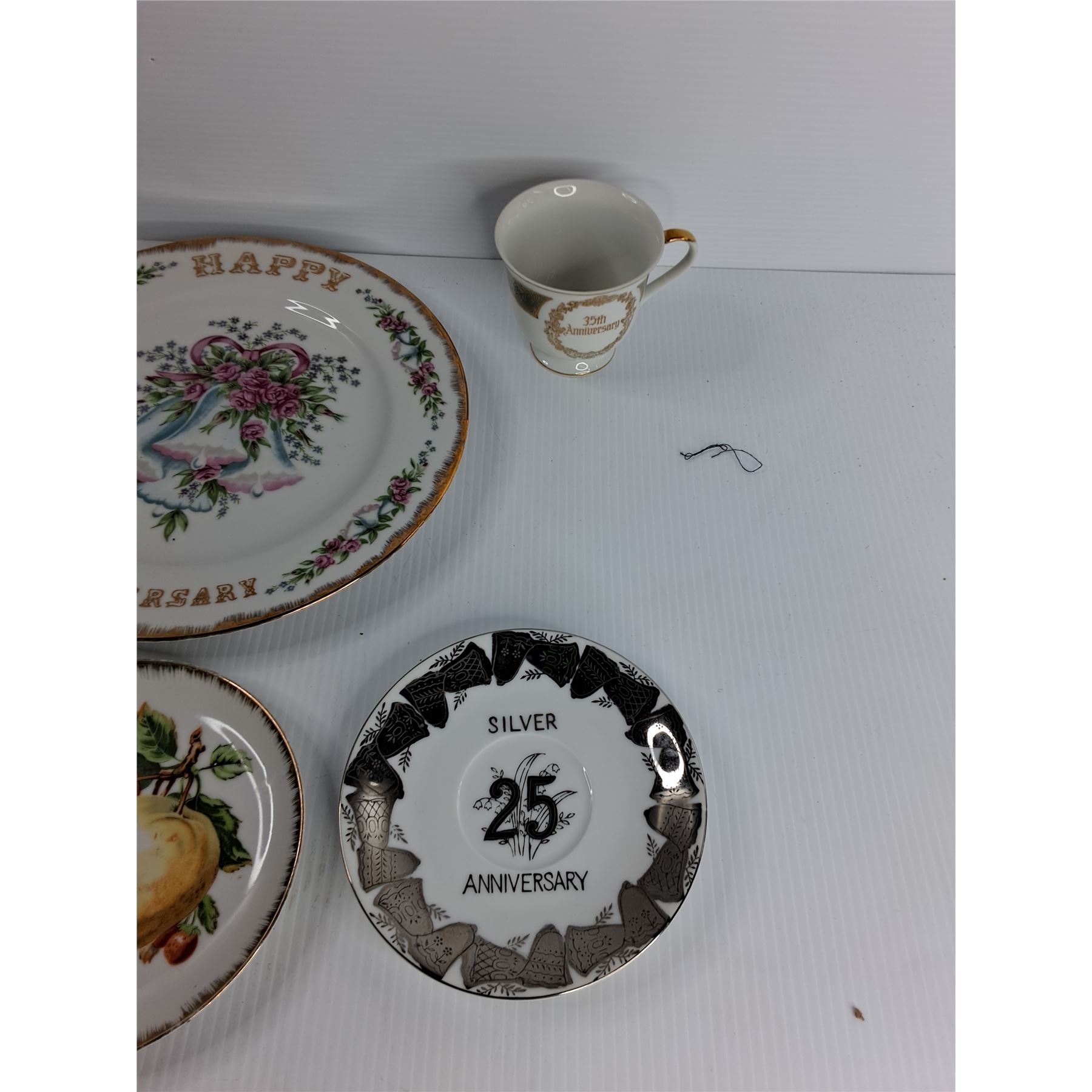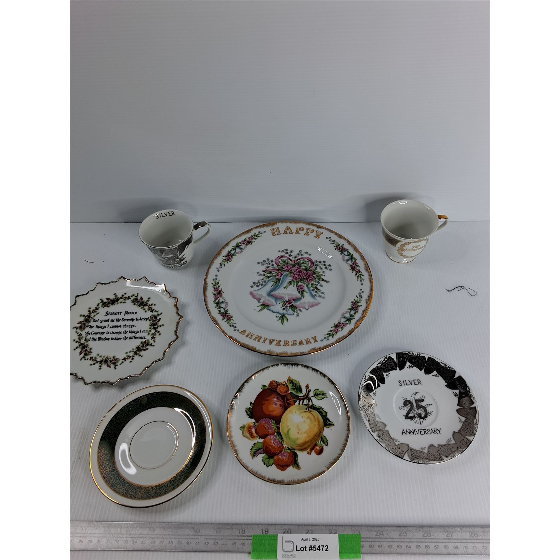 Various Annaversary Themed Dishes, (5) Plates, (2) Cups