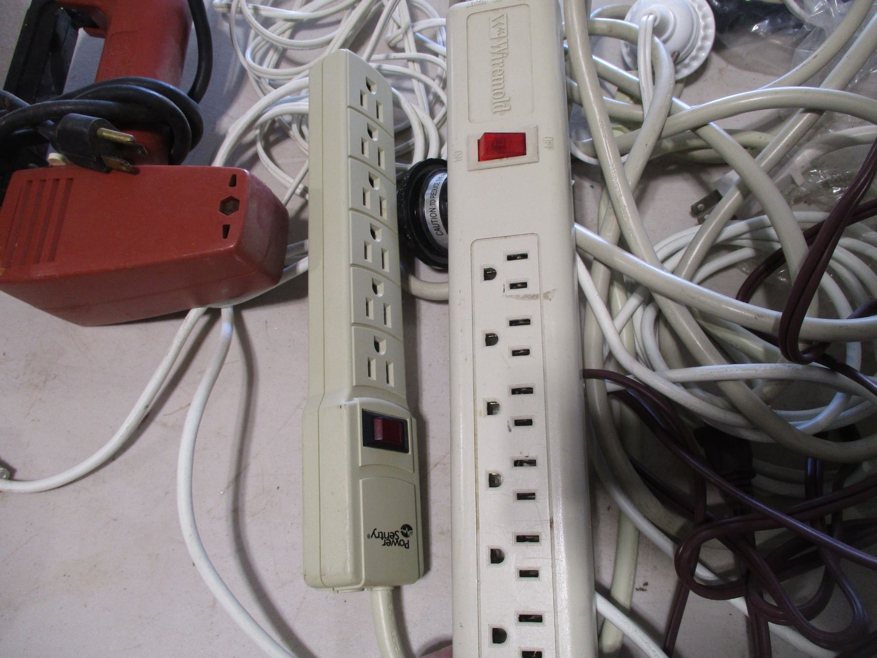 Various Cords, Power Bars, Light Sockets, Electric Stapler, Sockets etc.