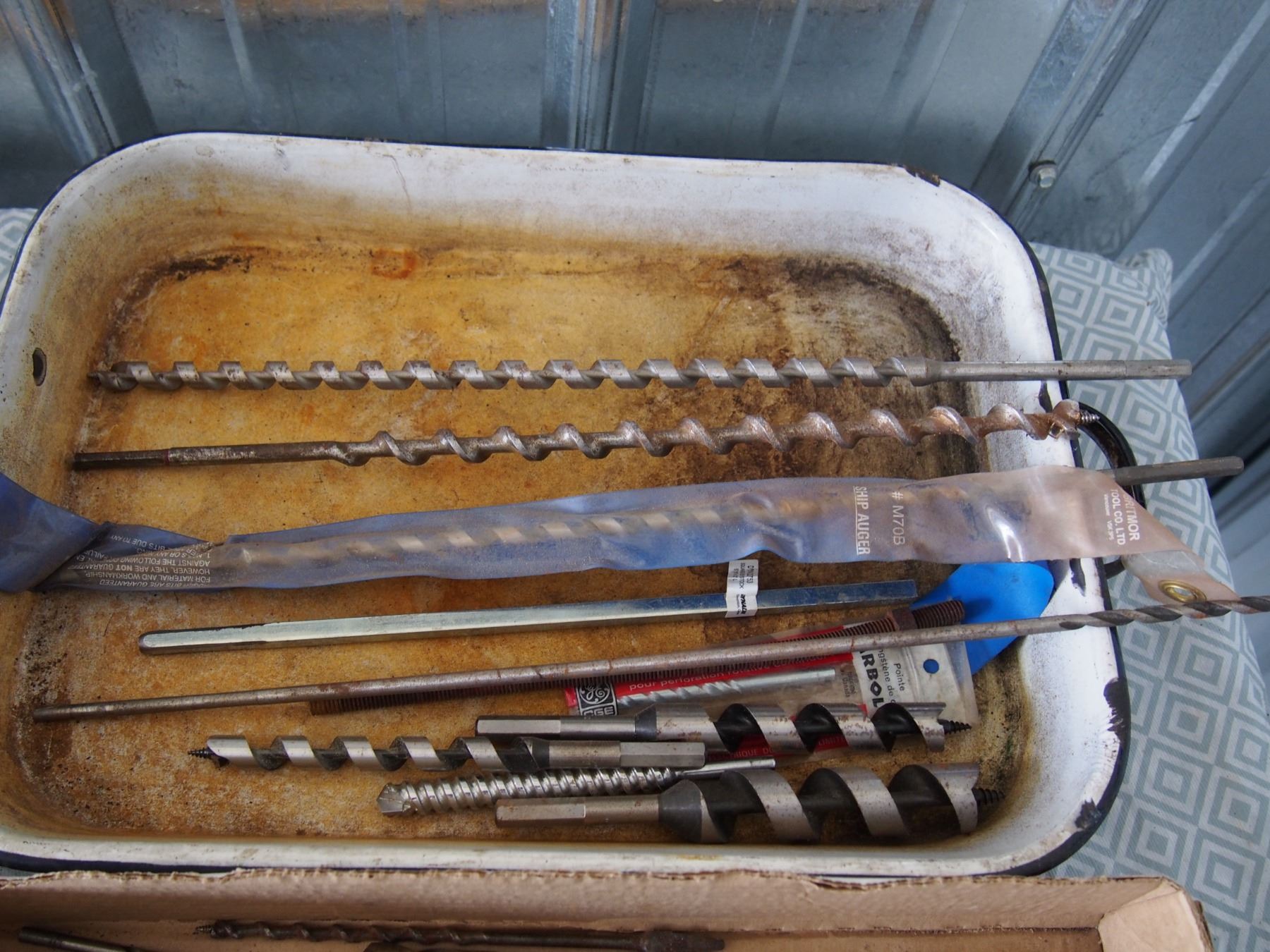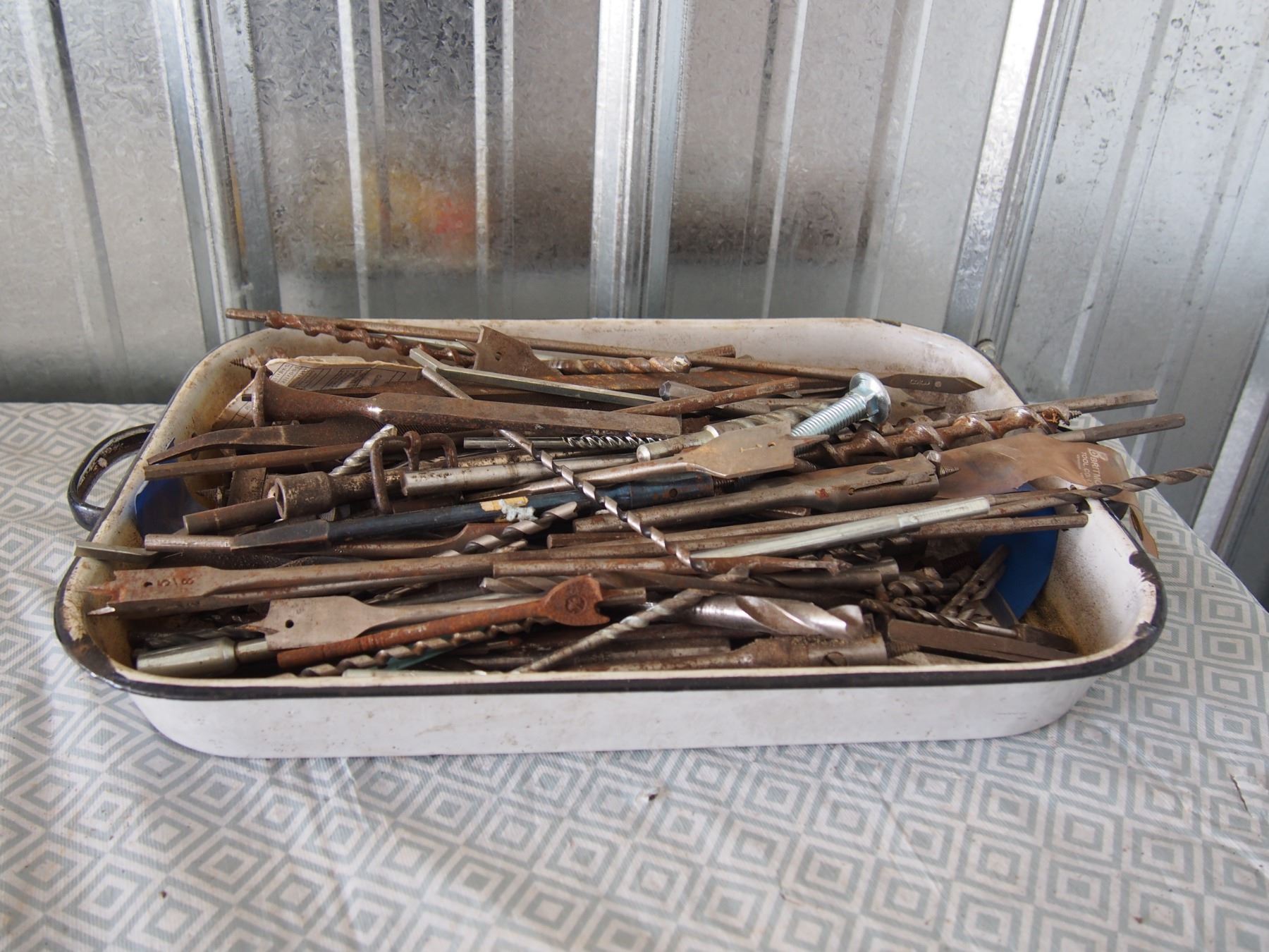 Various Drill Bits (Metal & Wooden)w/Enamel Pan