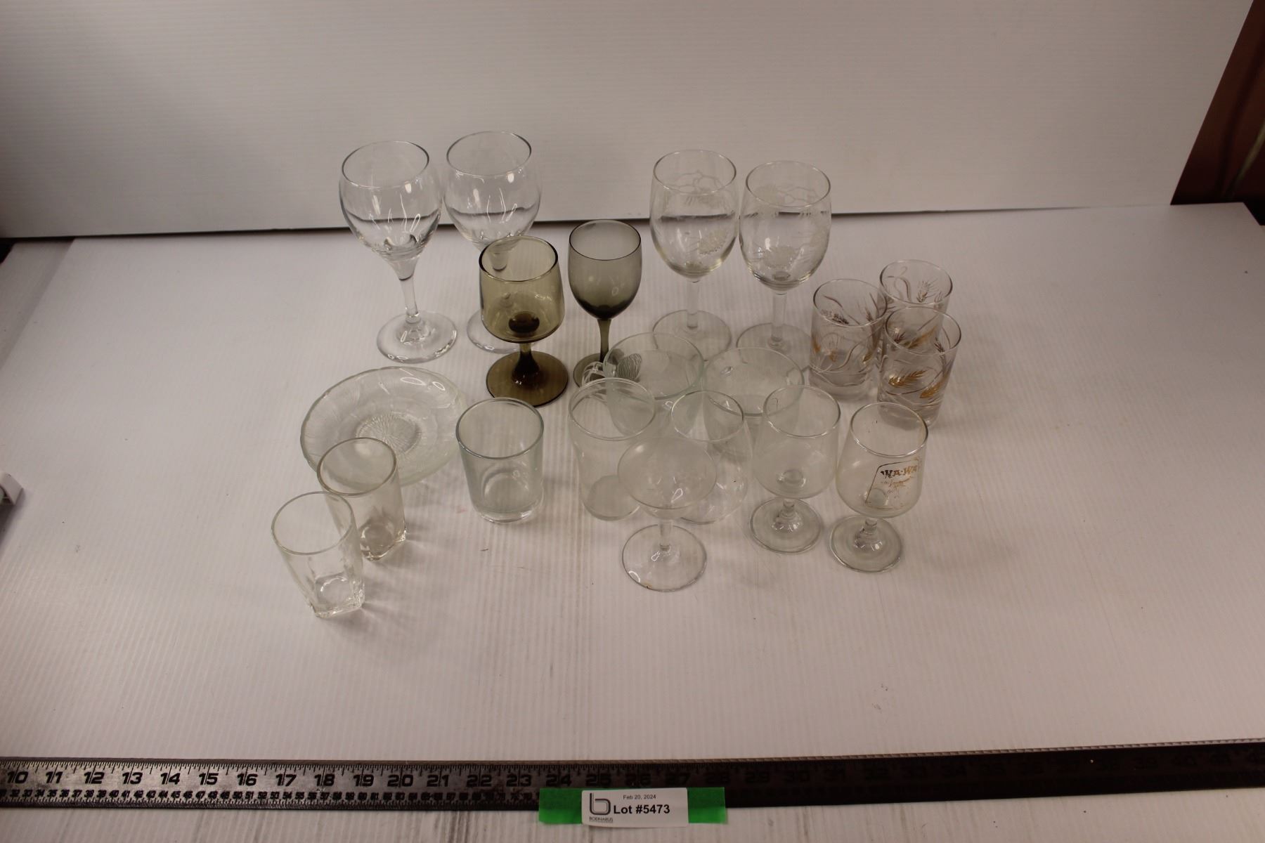 Various Glassware - Wine, Saucers, Cups, Glasses etc.