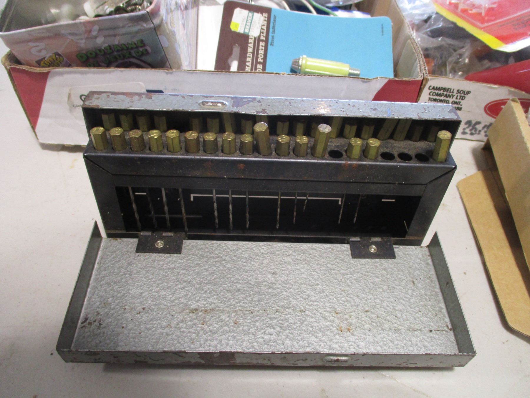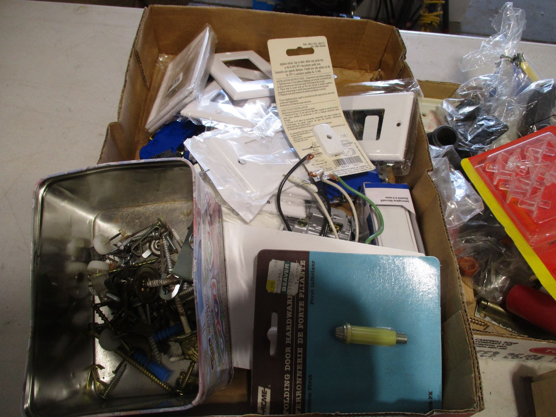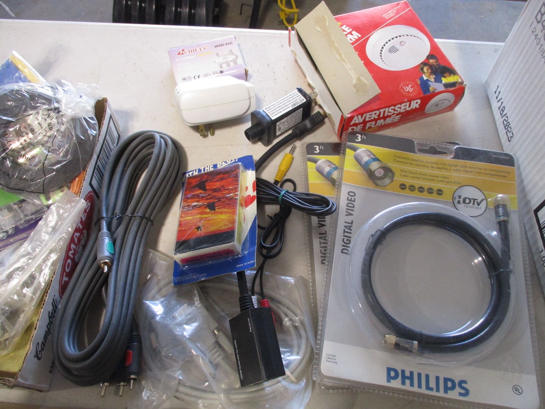 Various Items - Splitters, Playing Cards, Candle Snuffer, Keyboard, Various Cables, Fine Drill Bit Set, Hardware, Electrical Plates, Smoke Detector etc.