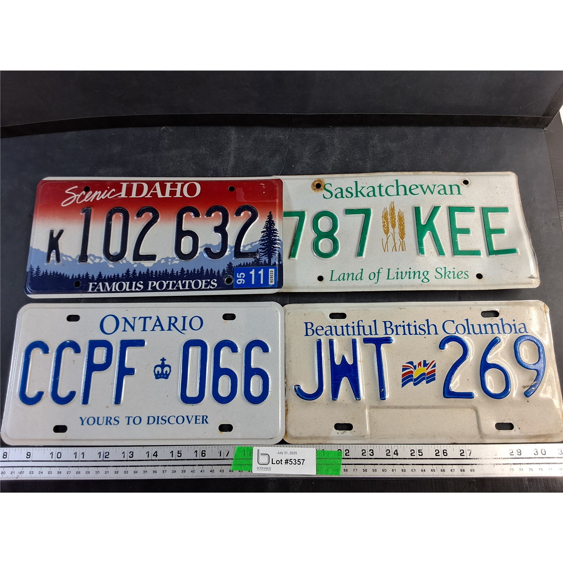 Various License Plates - Idaho, Saskatchewan, British Columbia and Ontario