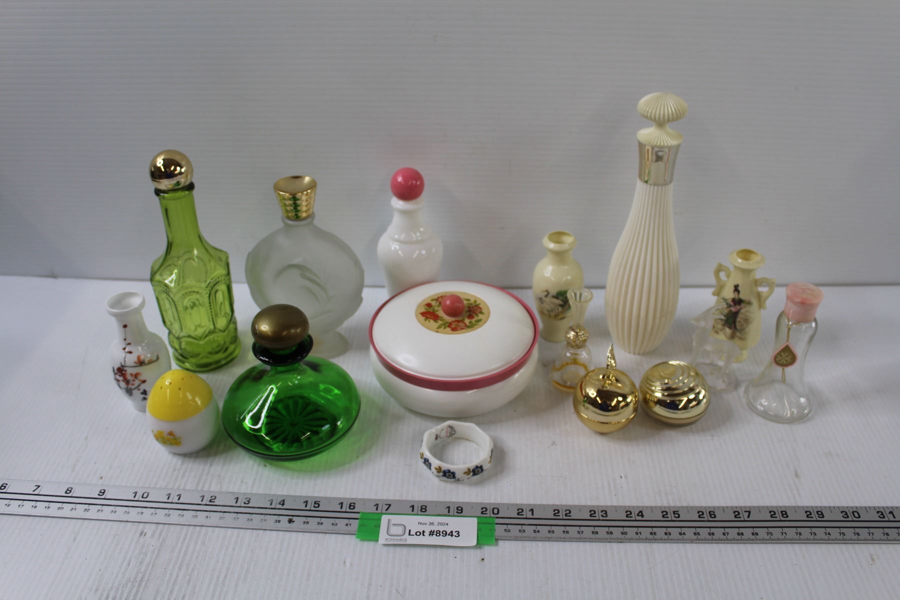 Various Perfume Bottles, Asian Themed Vases, Misc.