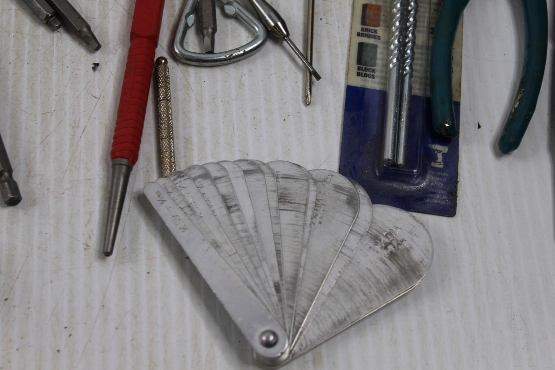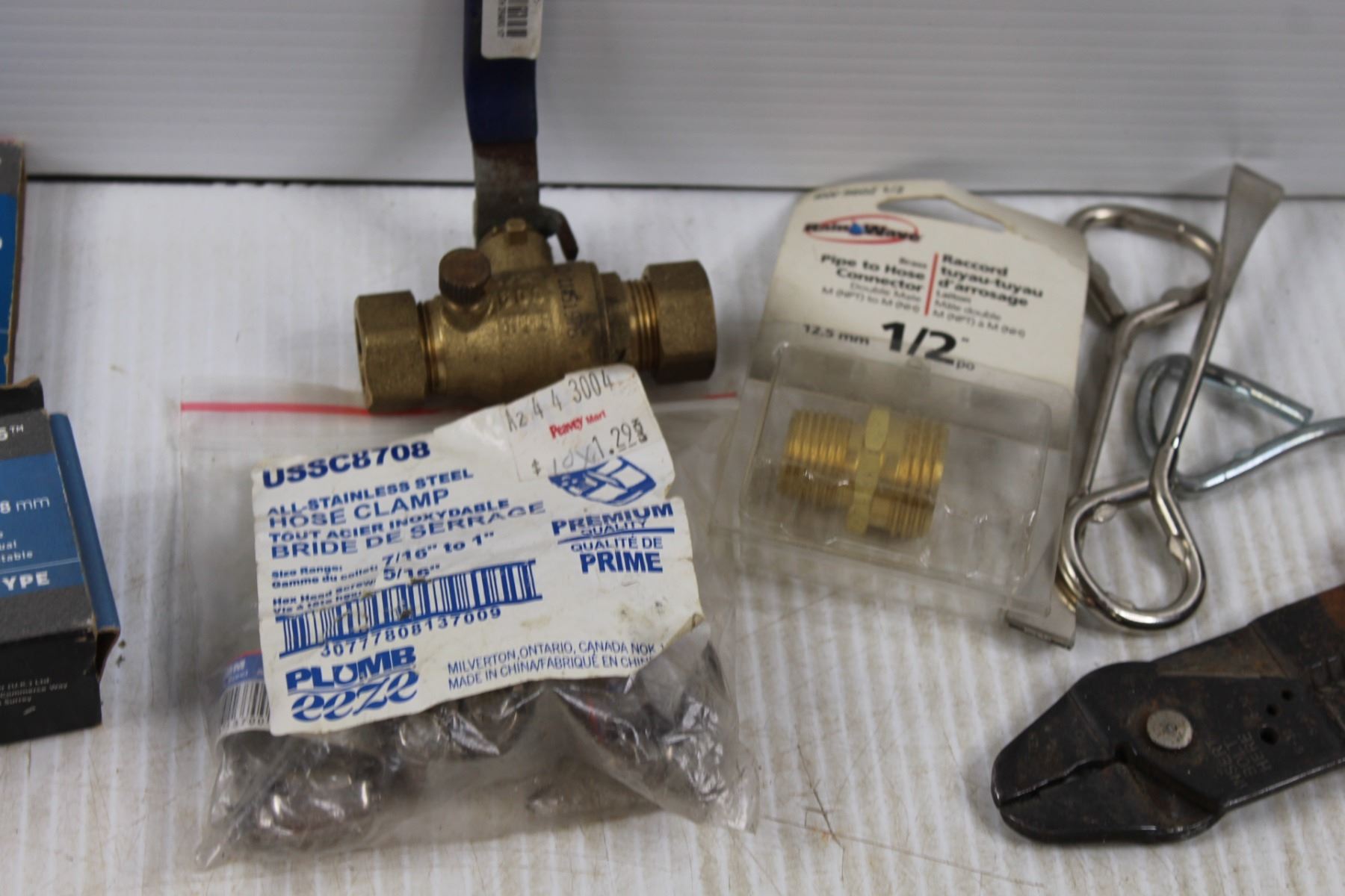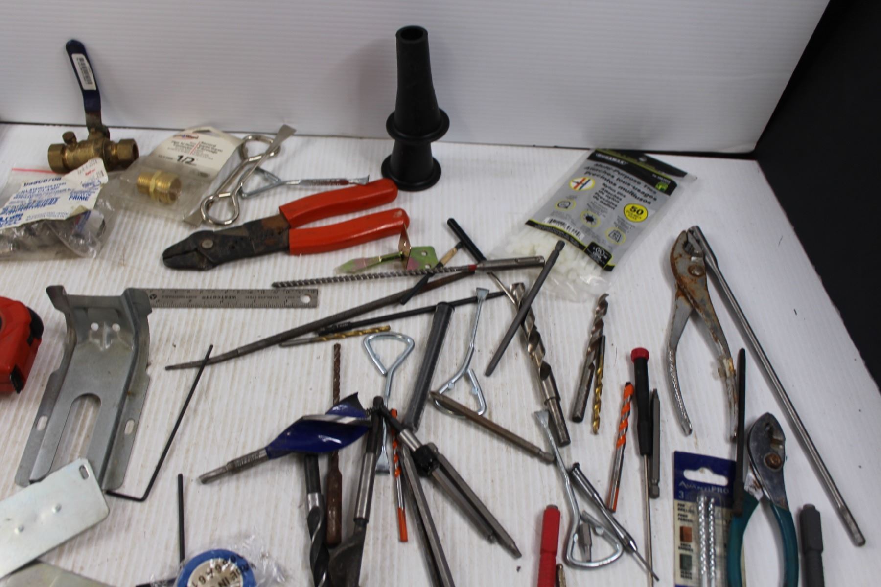 Various Shop Items - Precision Screwdriver, Drill Bits, Grove Gauge, Tape Measure, Cable Ties, Staples, Plumbing Parts, Pliers, Wire Strippers etc.