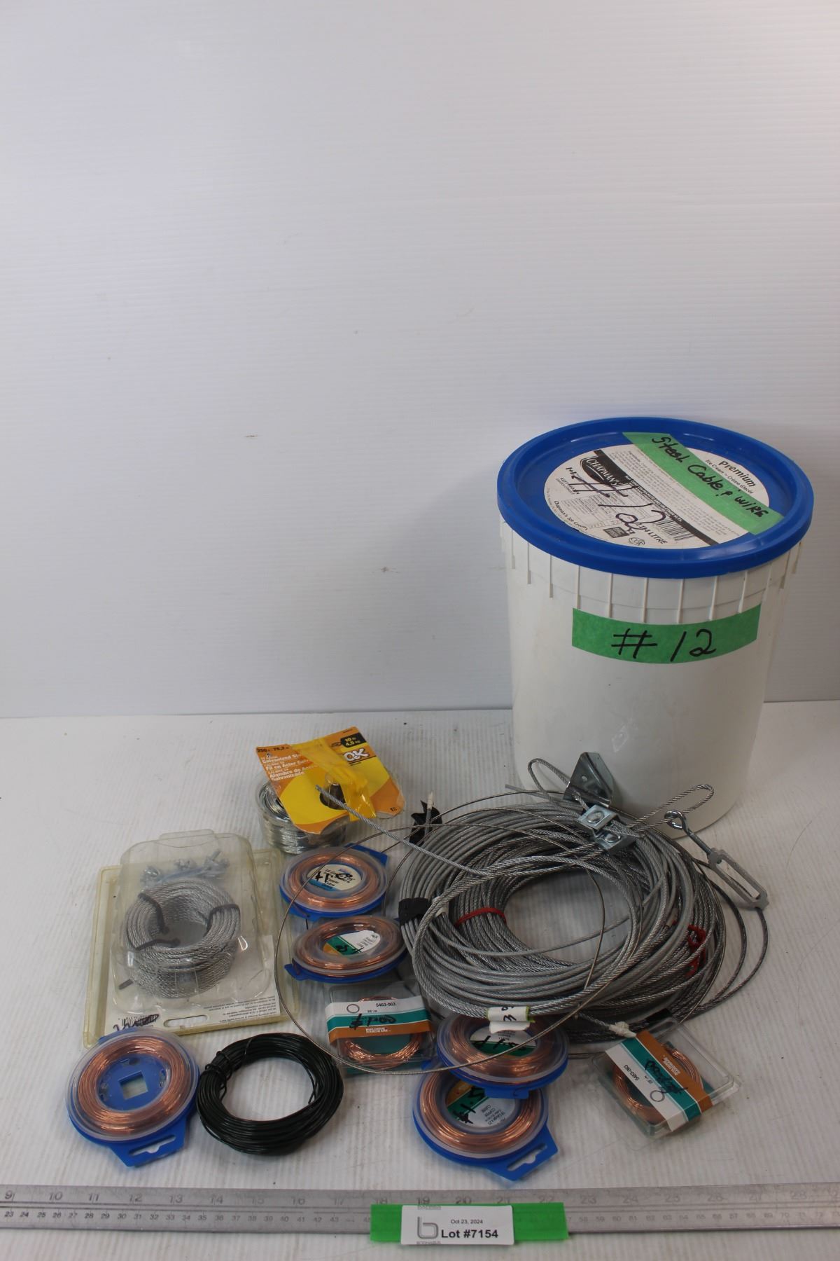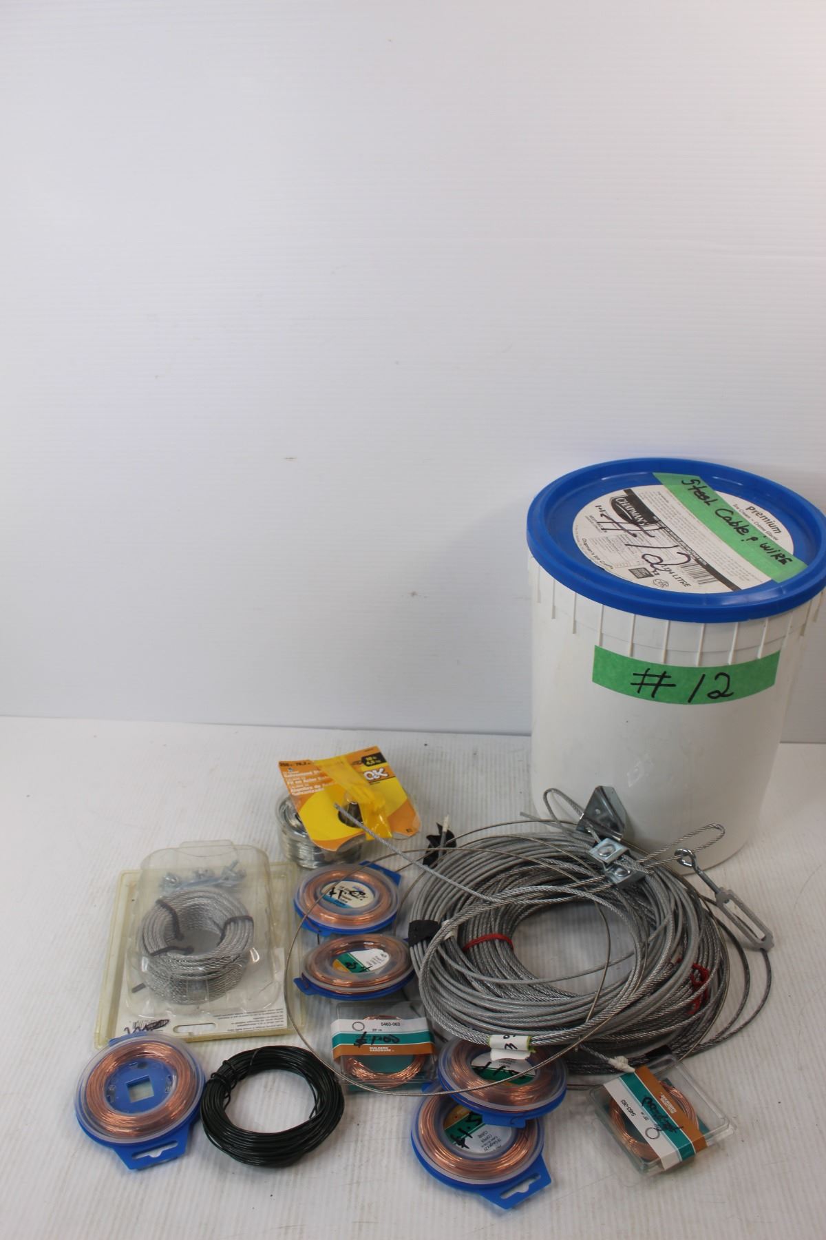 Various Spools Of Small Steel Cables w/ large Ice Cream Pail