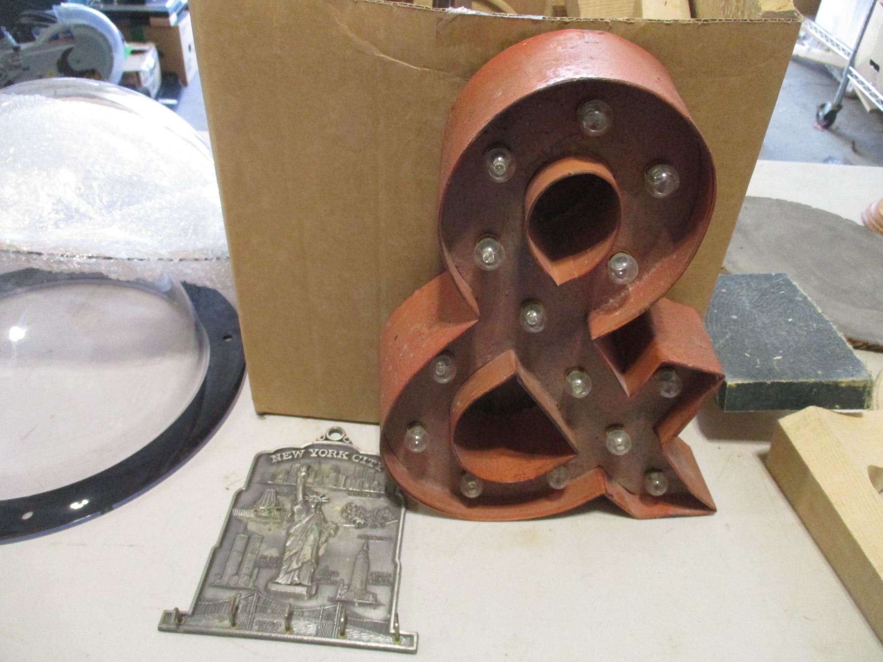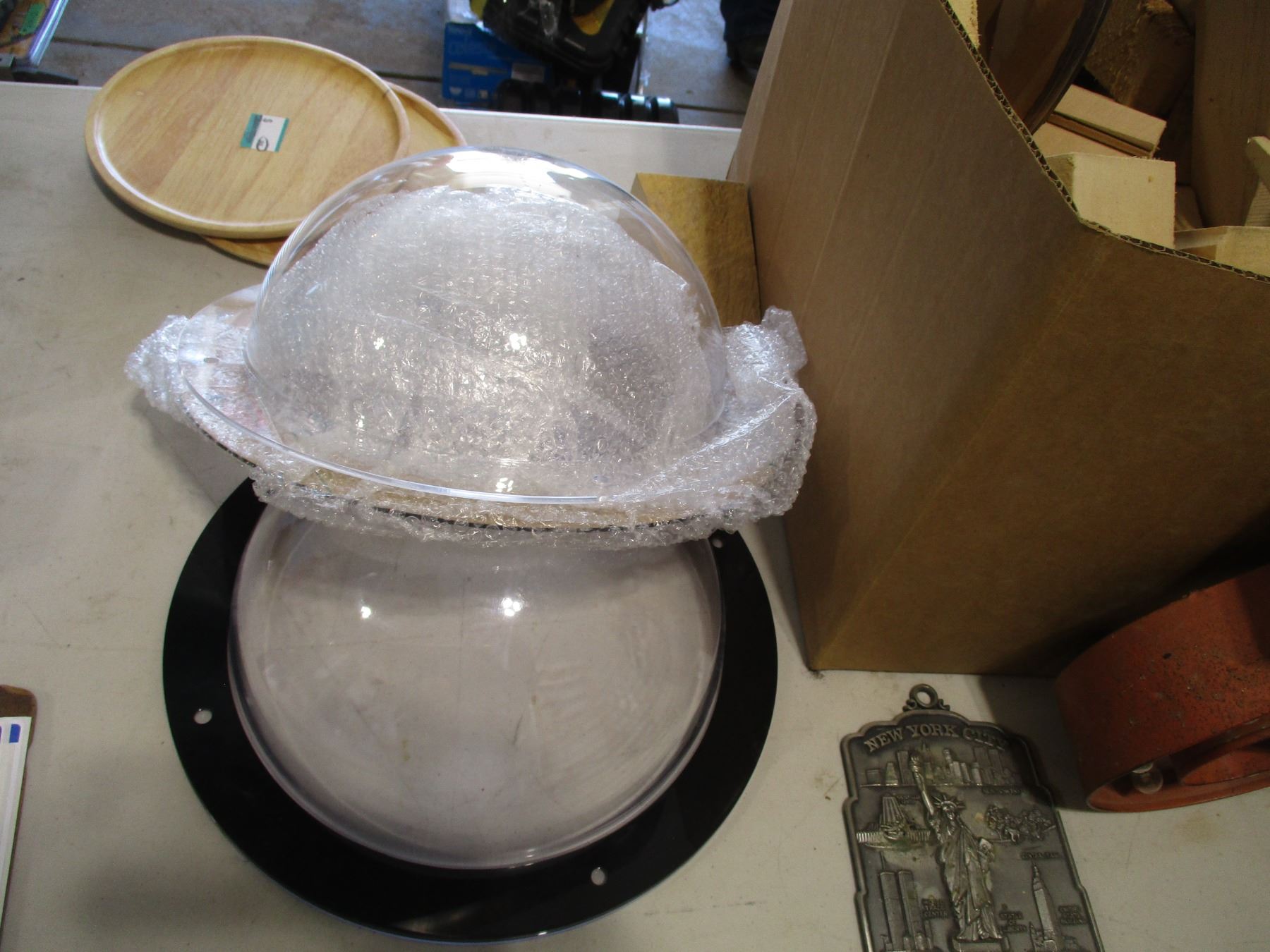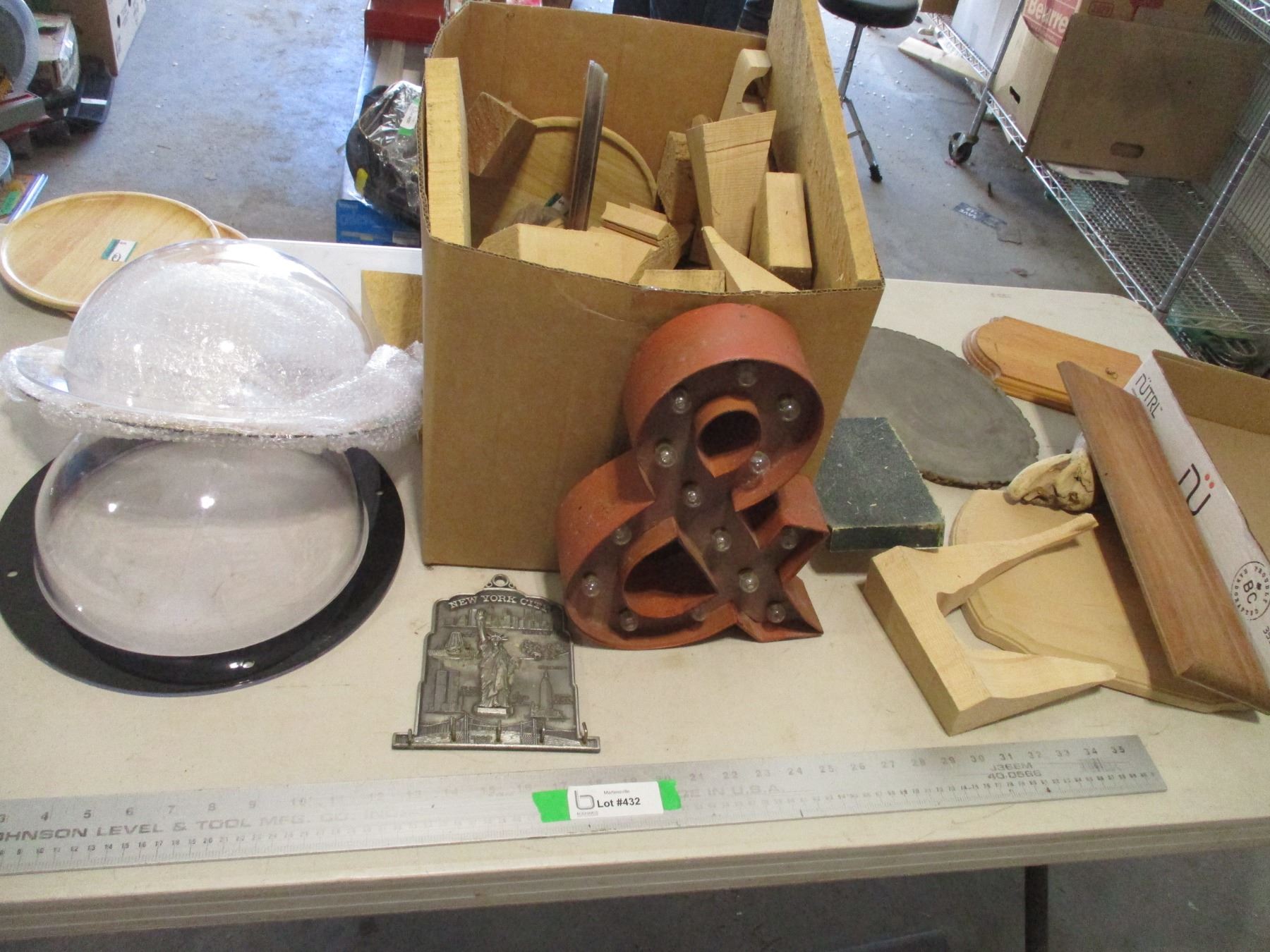 Various Wooden Items, (2) Plexiglass Flanged Domes etc.