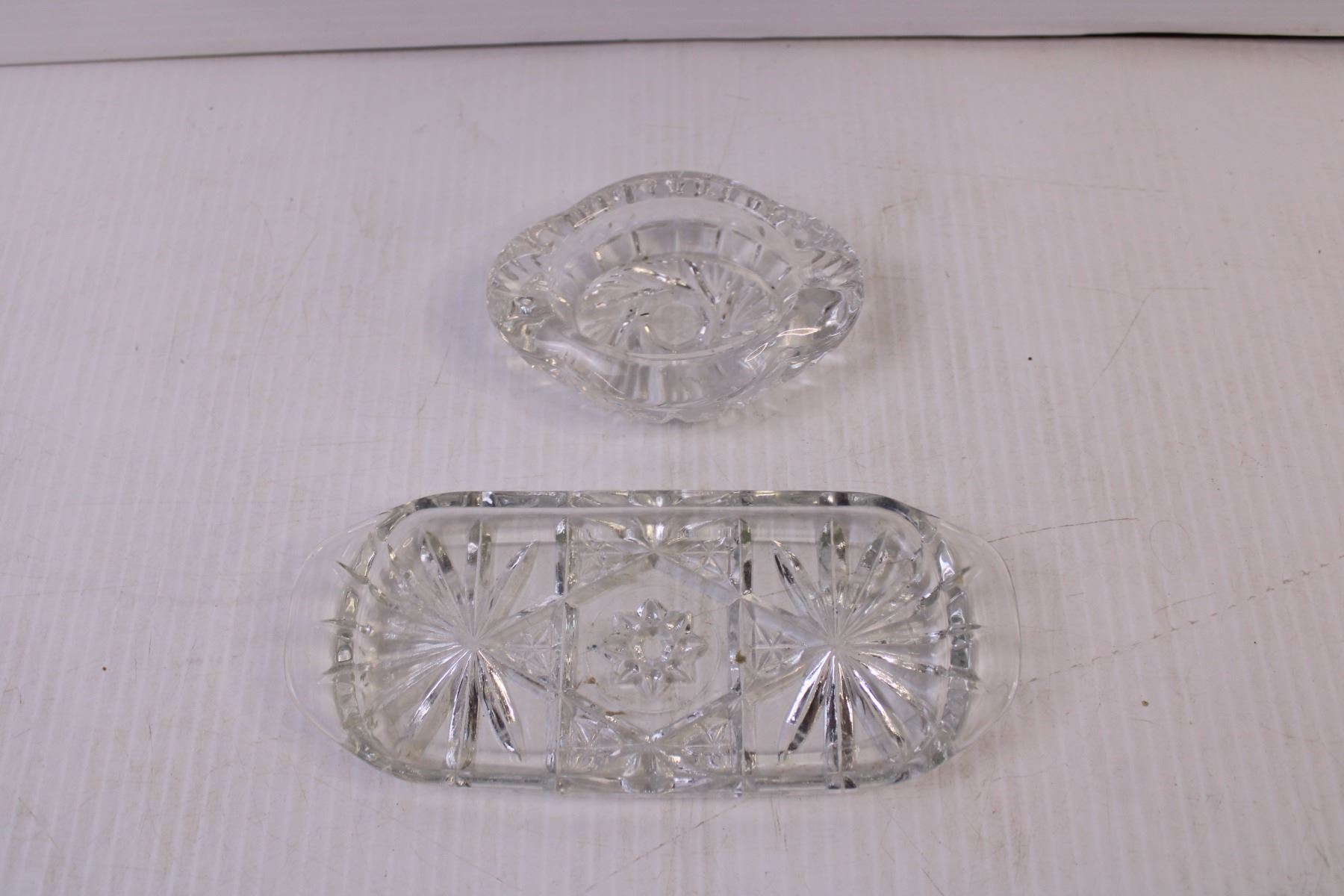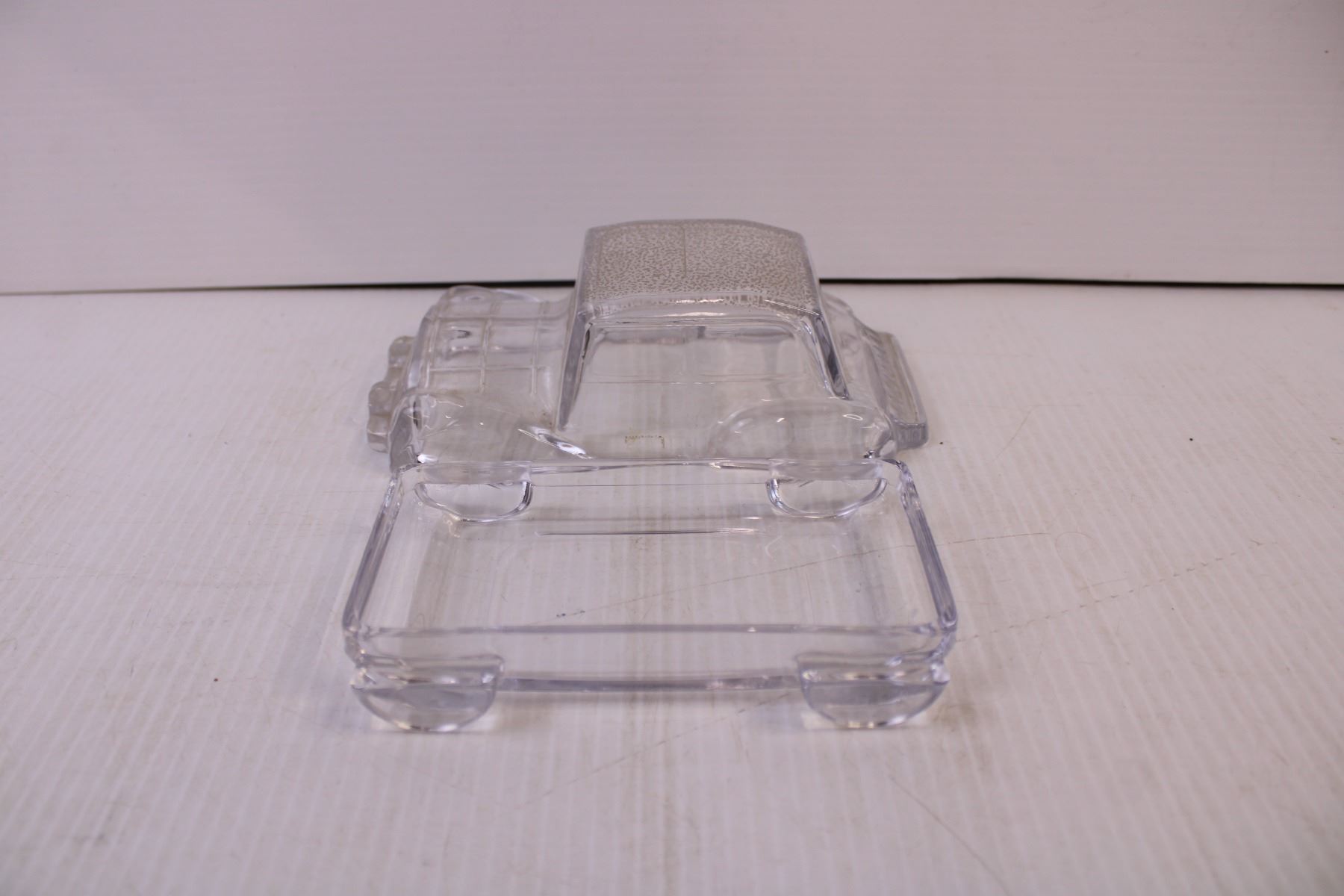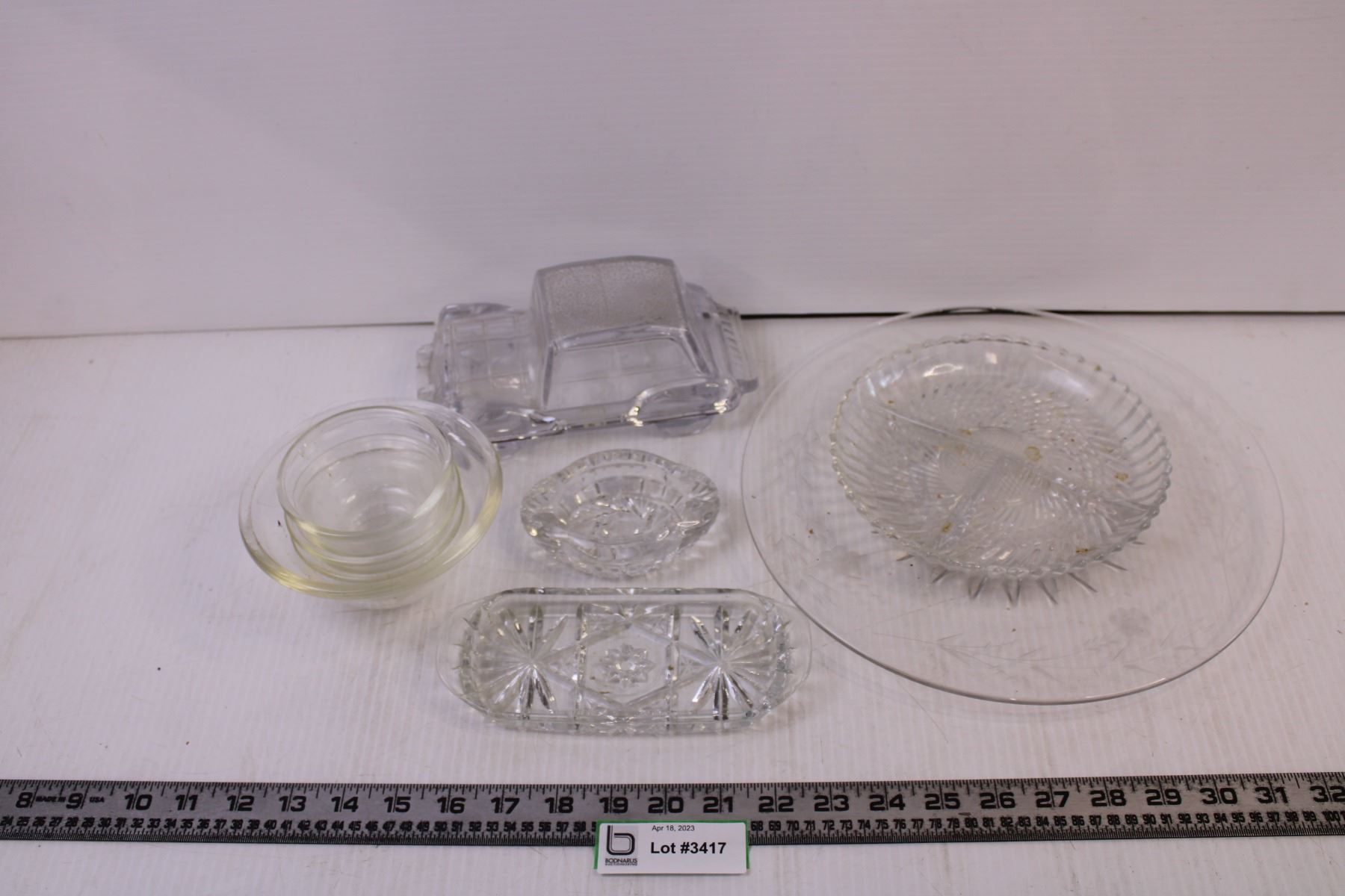 Various glasss serving dishes, novelty car shaped butter dish