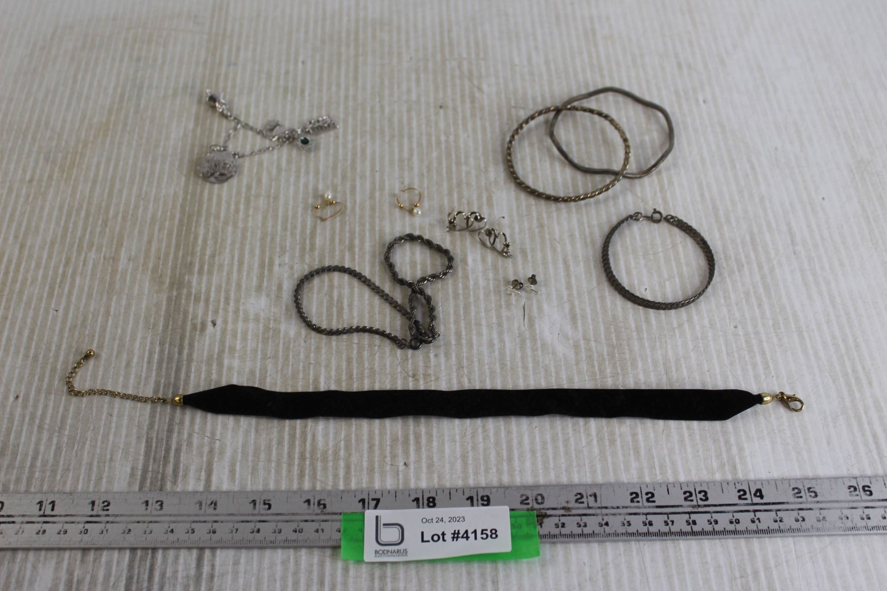 Velvet Choker, (6) Bracelets - Charm Bracelet, (3) Pairs Earrings - 1980s-1990s