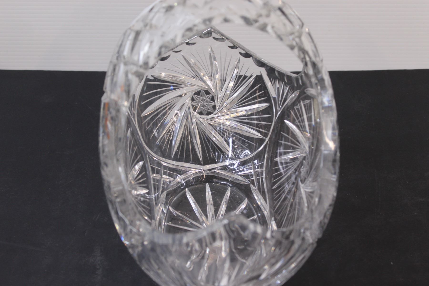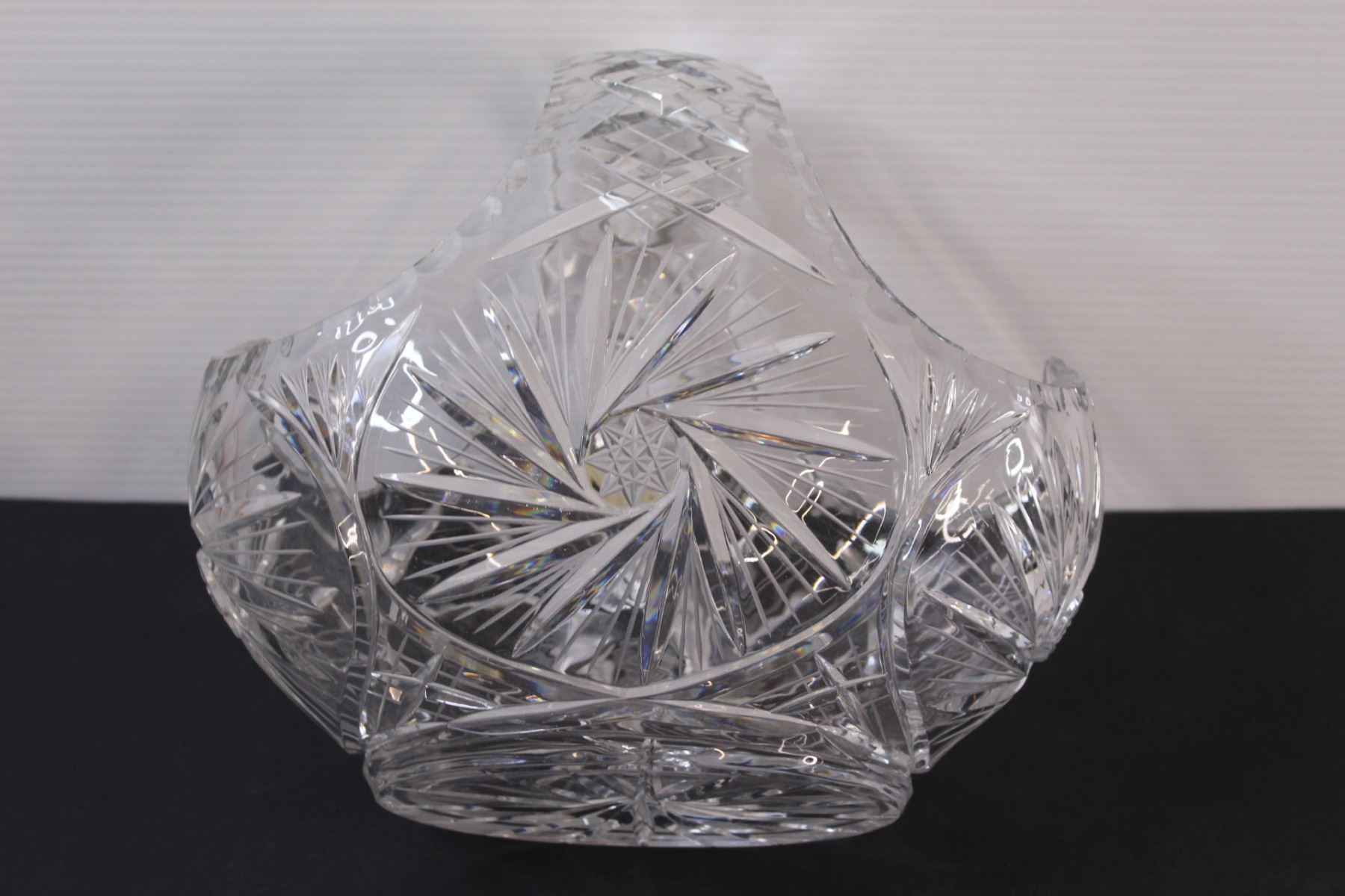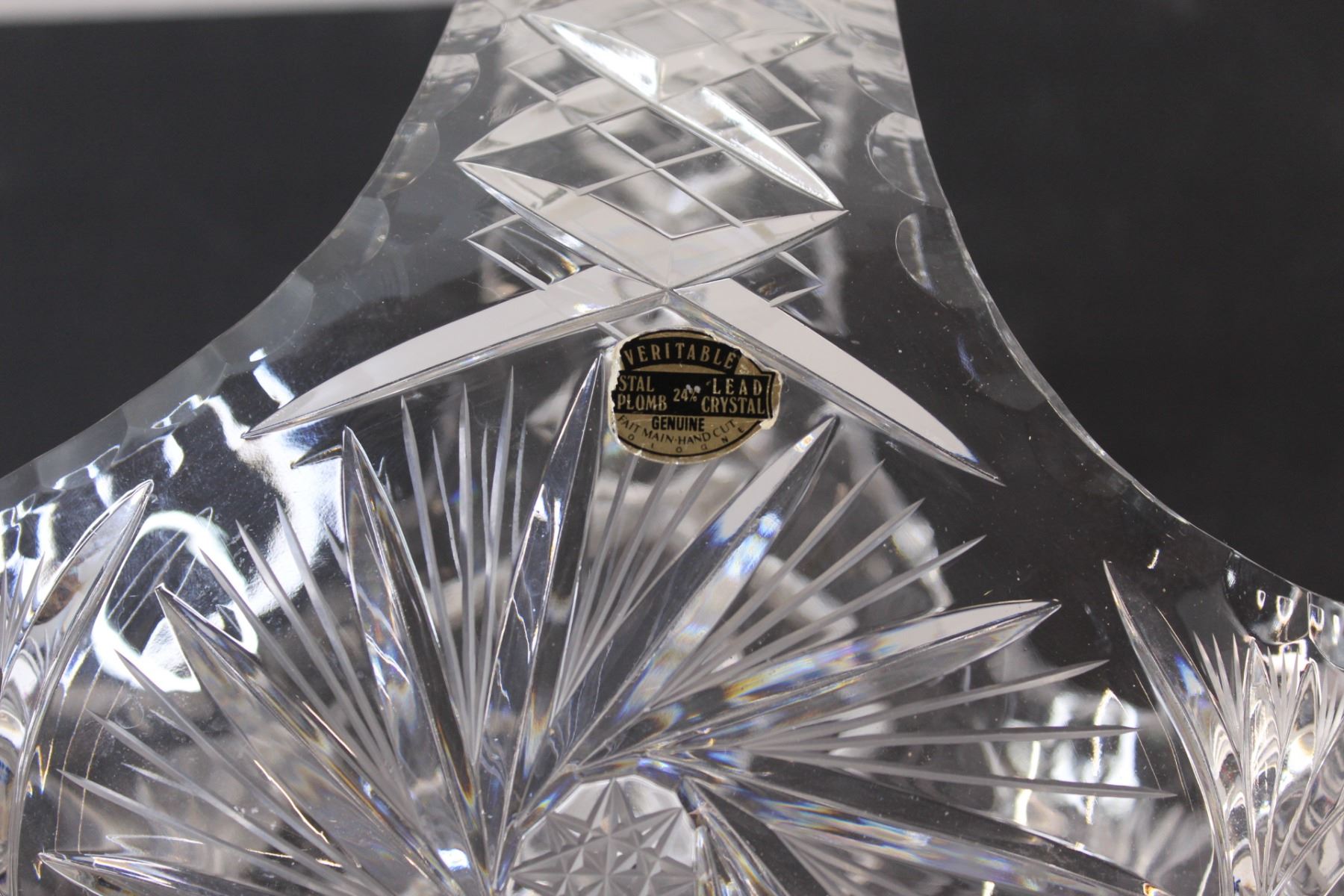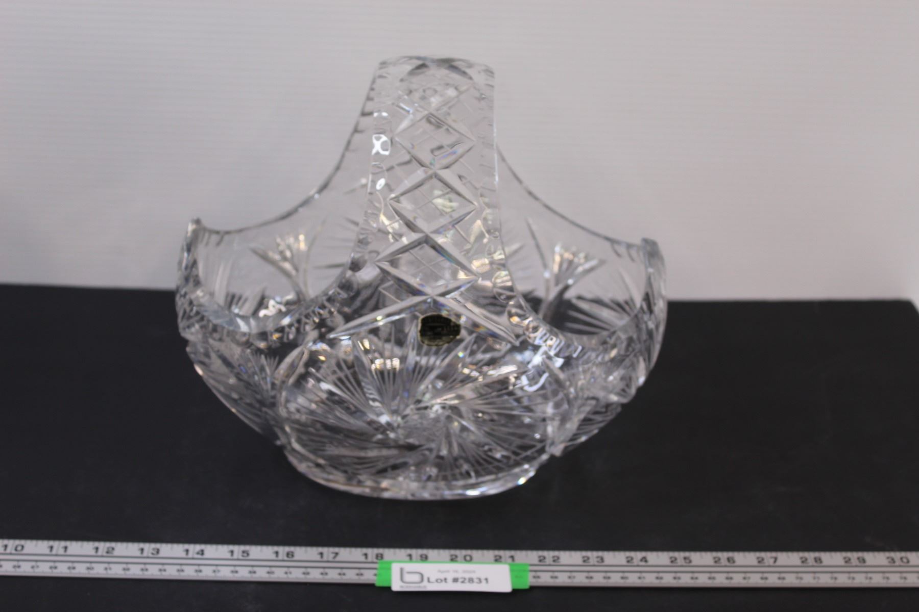 Veritable Genuine Lead crystal Large Basket Pinwheel Pattern has Foil sticker - 11" Long x 10 1/2" Tall