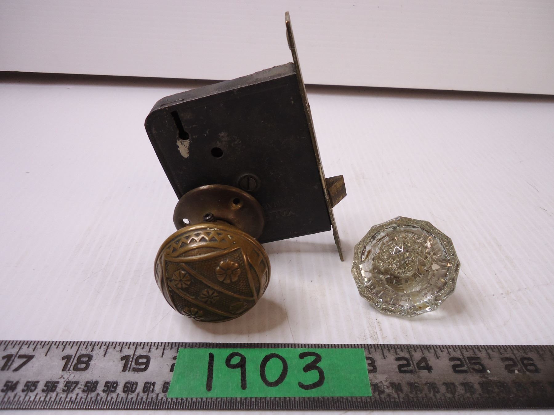 Victorian Ornate Brass Door Knob(incomplete) and Chipped Clear Glass Door Knob
