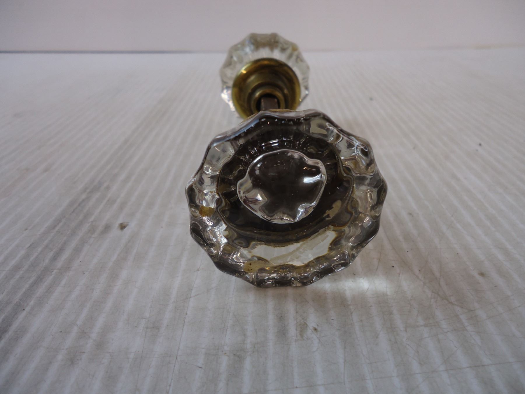 Vintage 12 Point Crystal Clear Glass Brass Door Knob