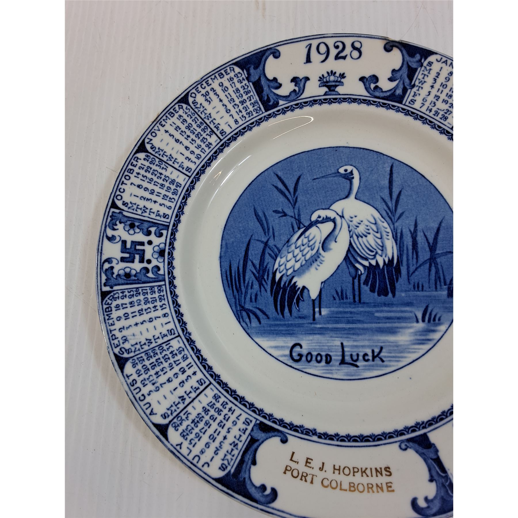 Vintage 1928 Calendar Plate - Port Colborne - 9" Diameter