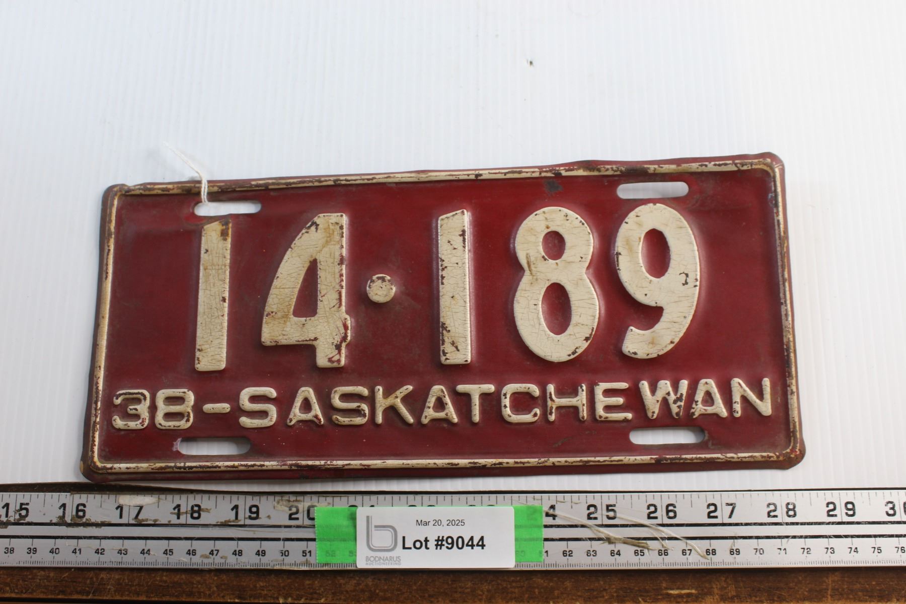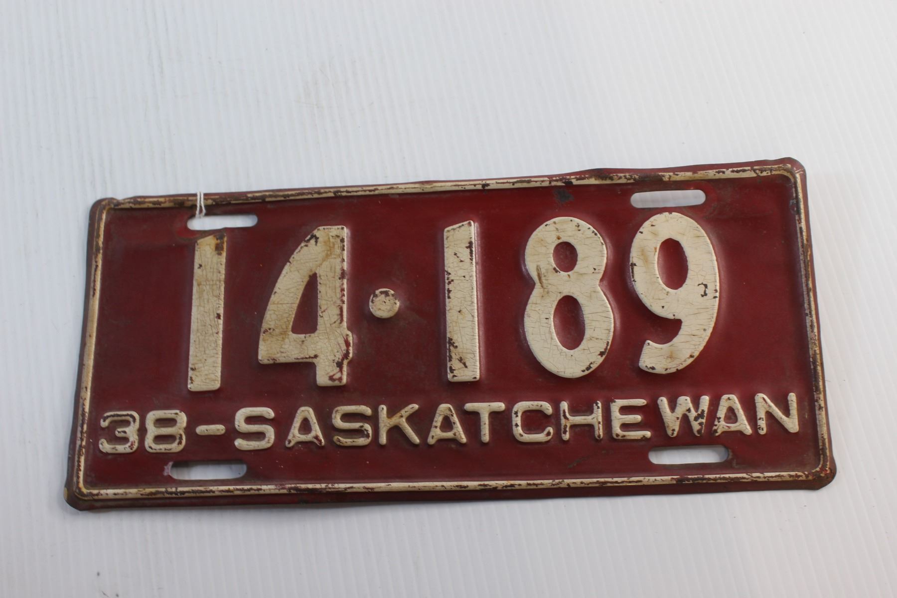 Vintage 1938 Saskatchewan Car Licence Plate