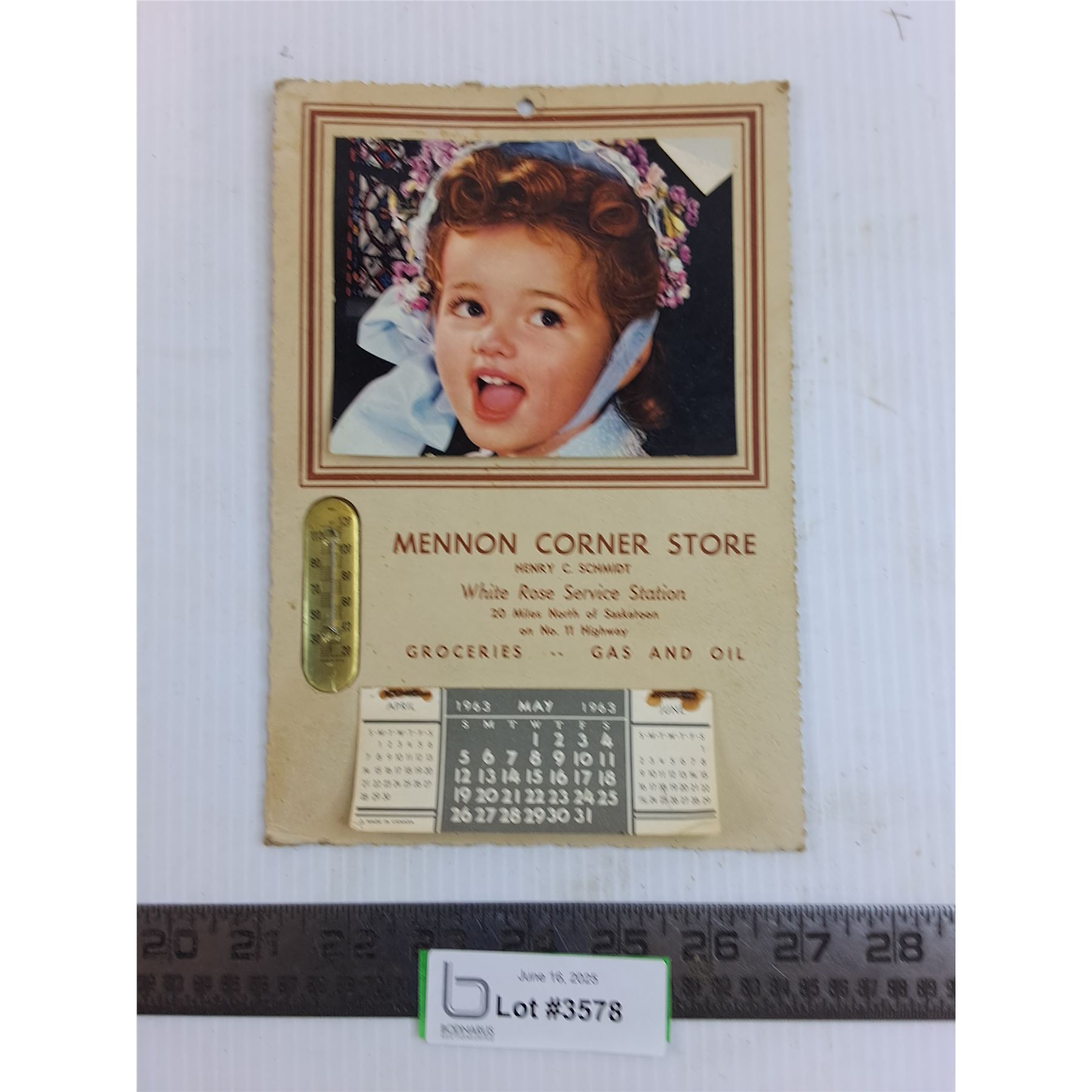 Vintage 1963 "Mennon Corner Store" Mini Wall Calender