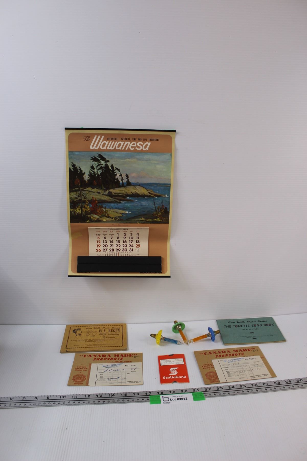 Vintage 1963 Wall Calendar, (3) Bubble Christmas Lights, Various Photo & Bank Memorabilia