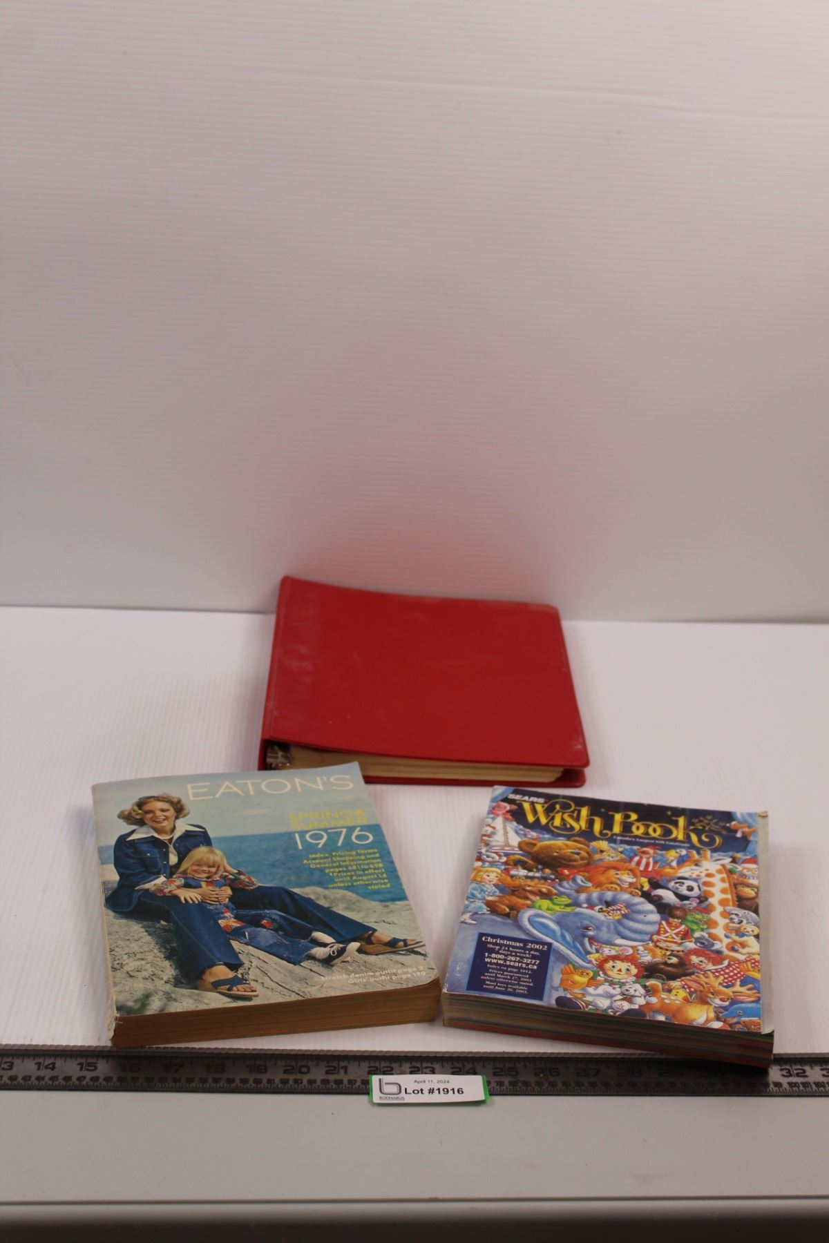 Vintage 1976 Eaton's Catalogue, 2002 Sears Wish Book Catalogue & Binder w/Loose Leaf Paper