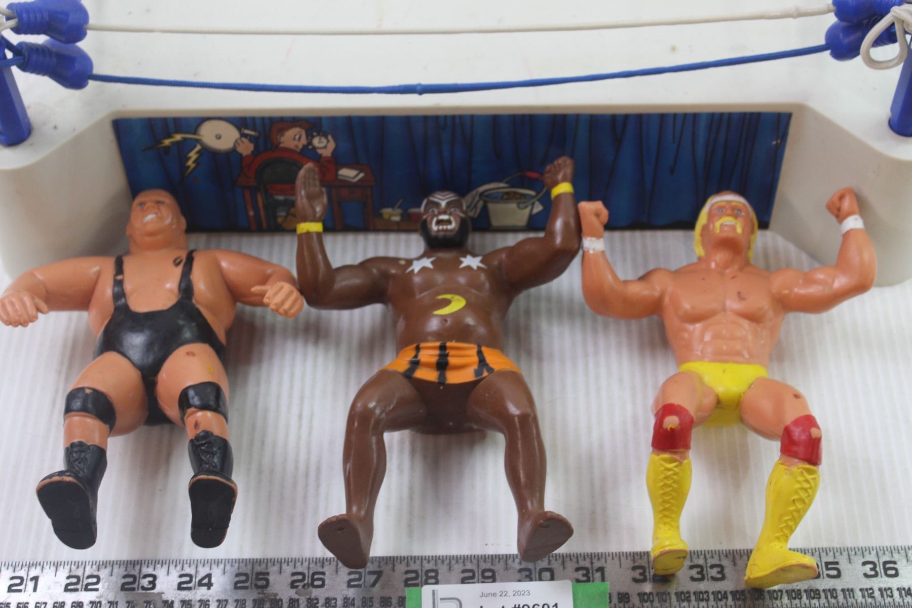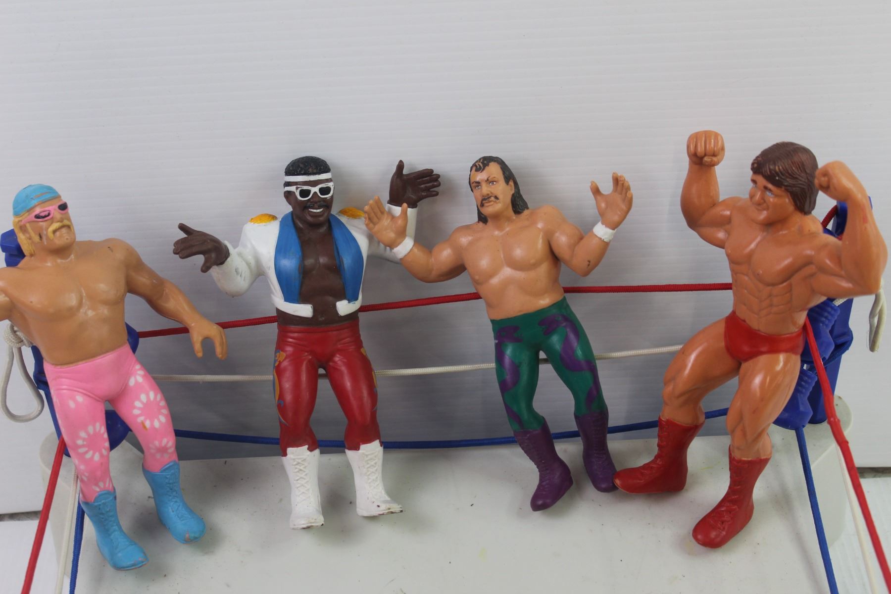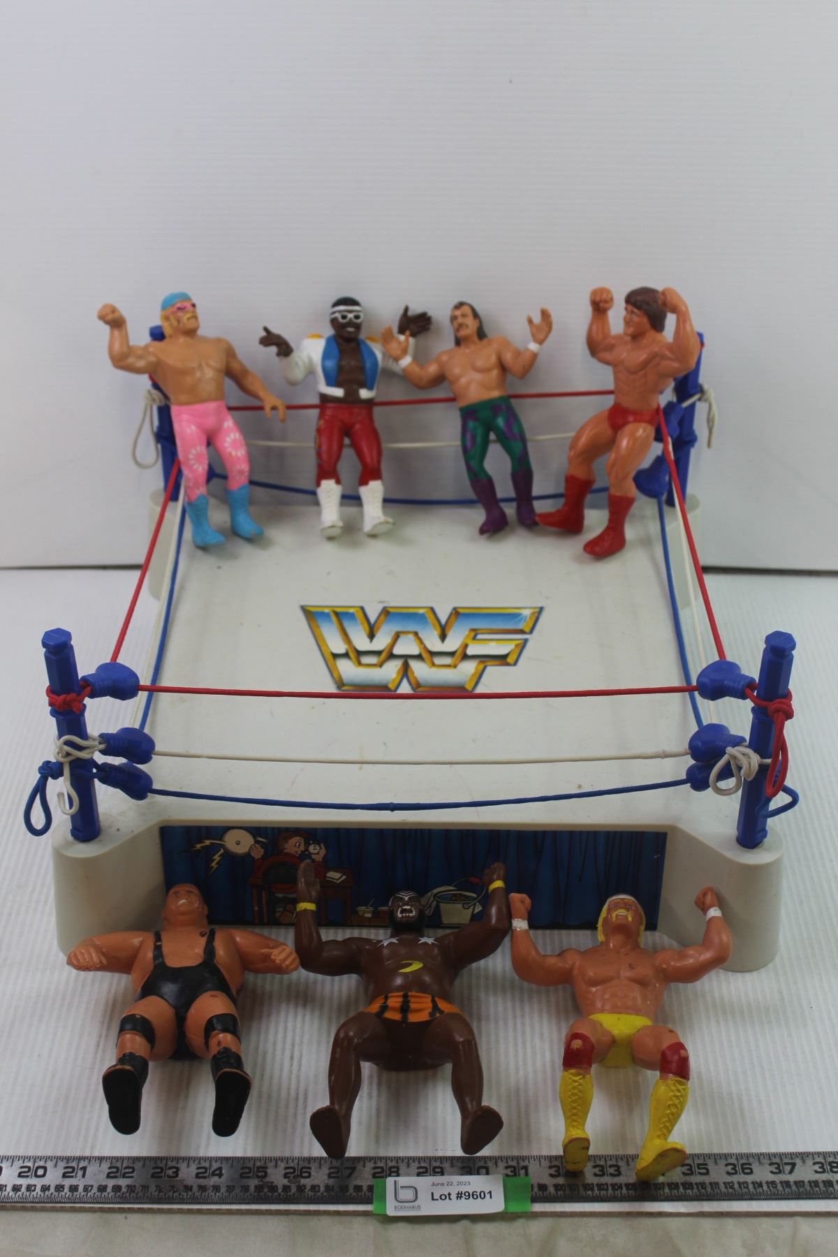 Vintage 1985 LJN WWF Sling Em, Fling Em, Wrestling Ring in Excellent Condition - Titan Sports - C/W 7 Wrestling Figures Including Hulk Hogan, King Kong Bundy and Jake the Snake