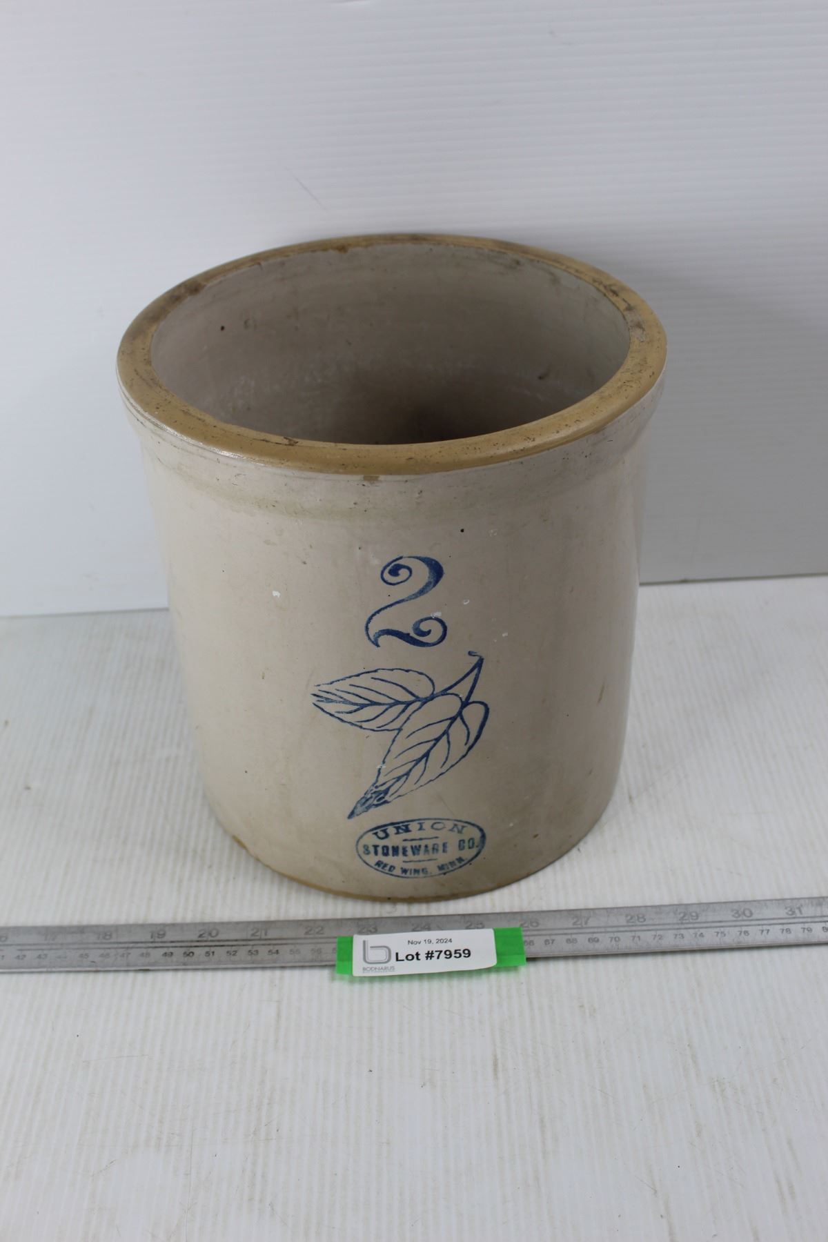 Vintage 2 Gallon Union Stoneware Co. Crock Pot Red Wing MINN. - As Is