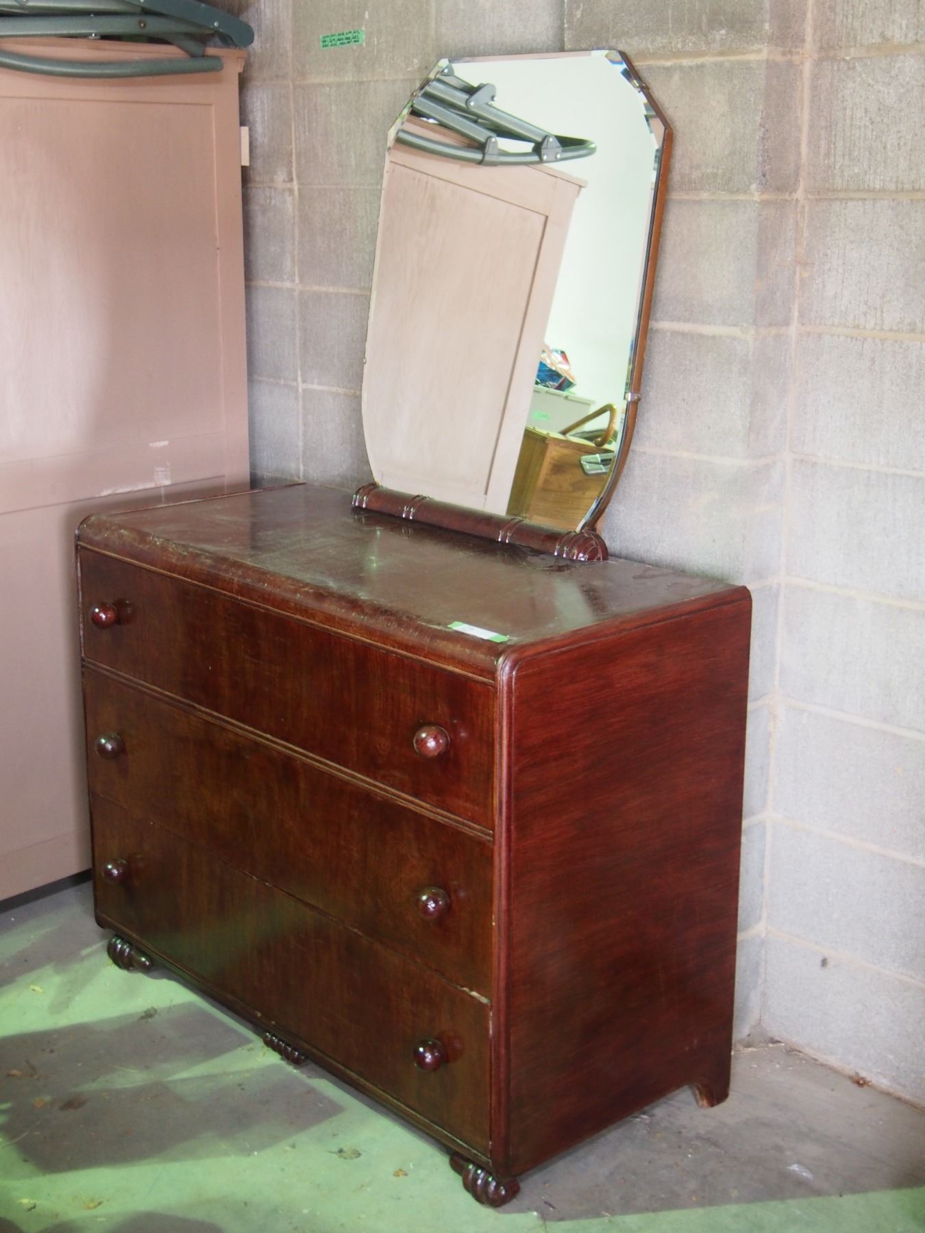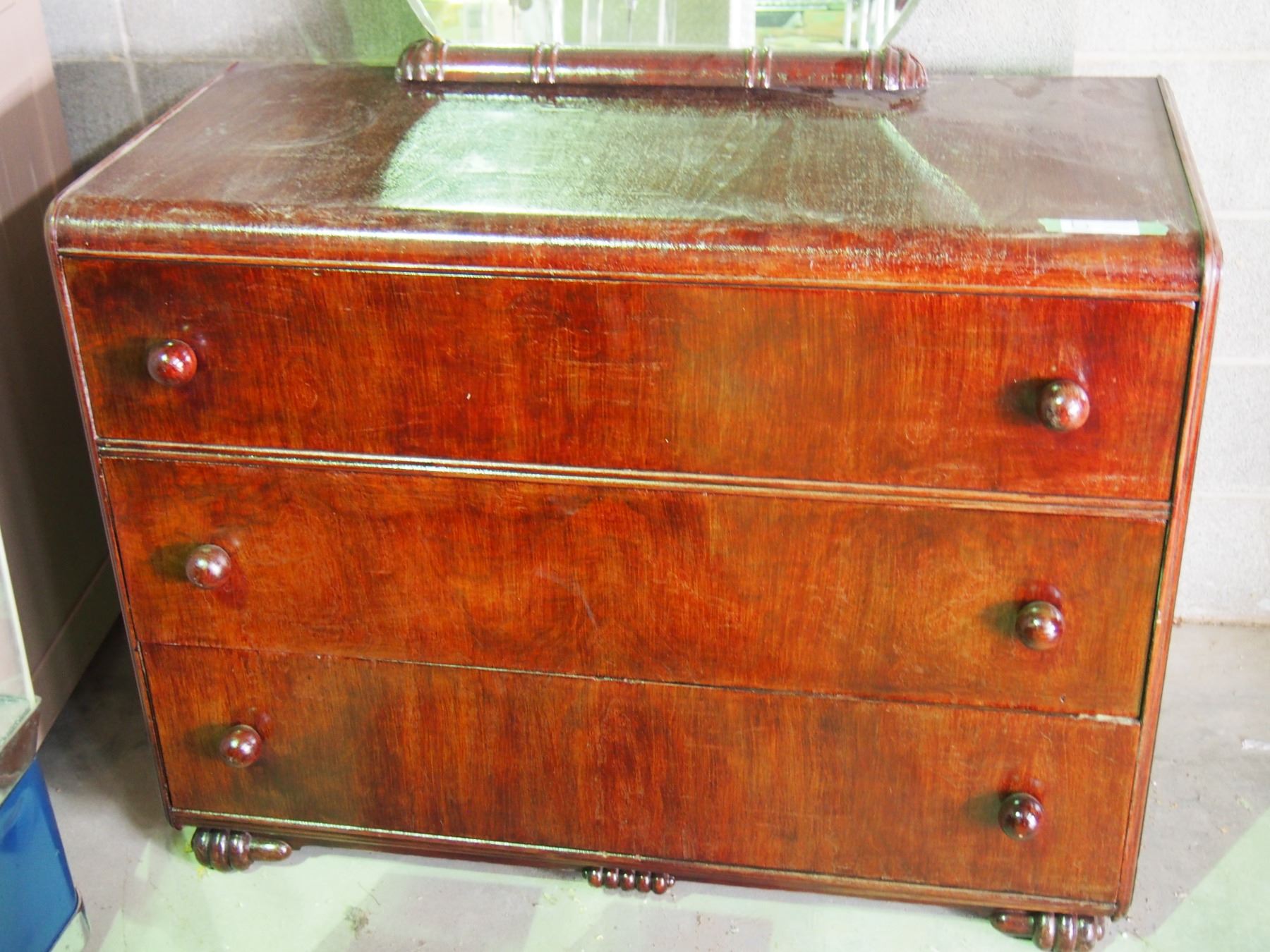 Vintage 3 Drawer Dresser and Mirror 43" by 20" by 34" T