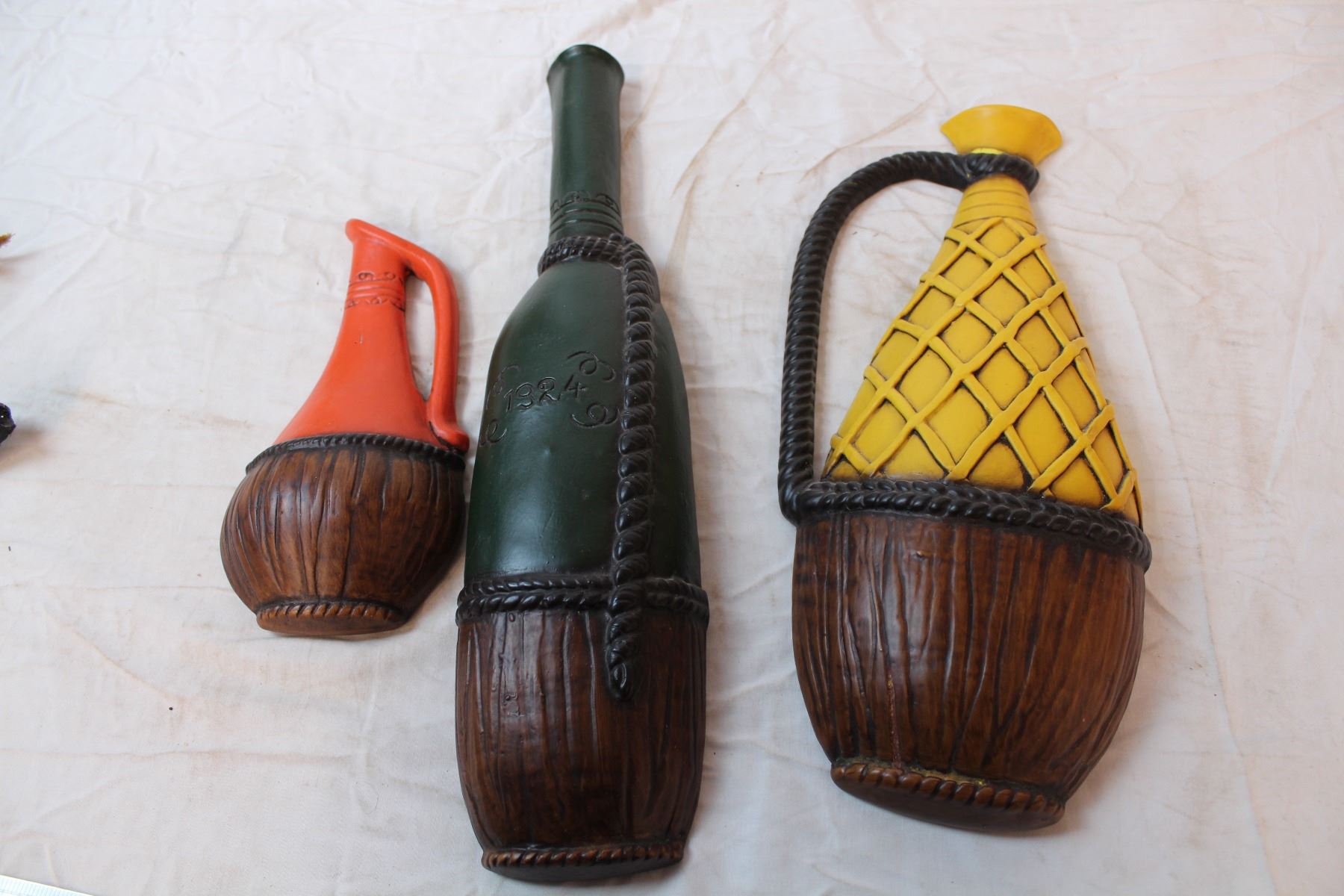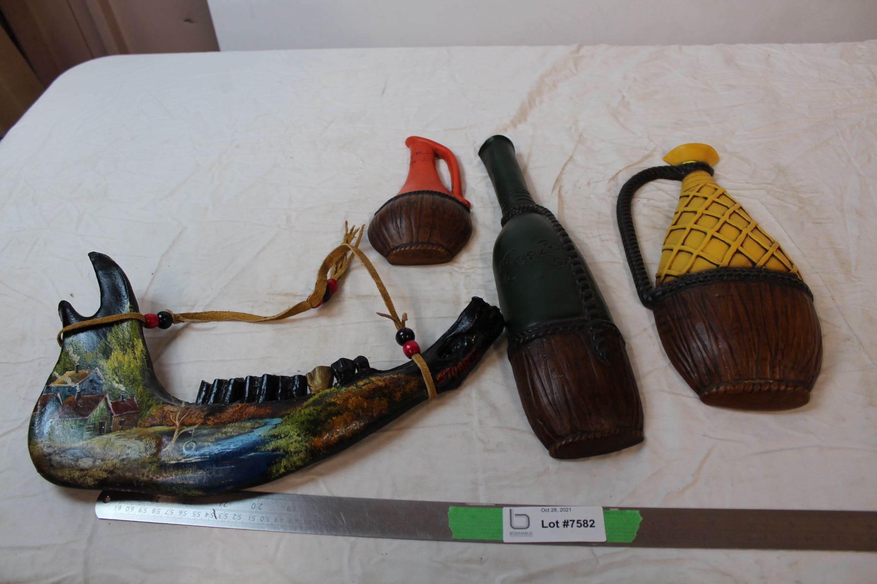 Vintage 3 Plaster wall decorations and hanging bone painted art piece