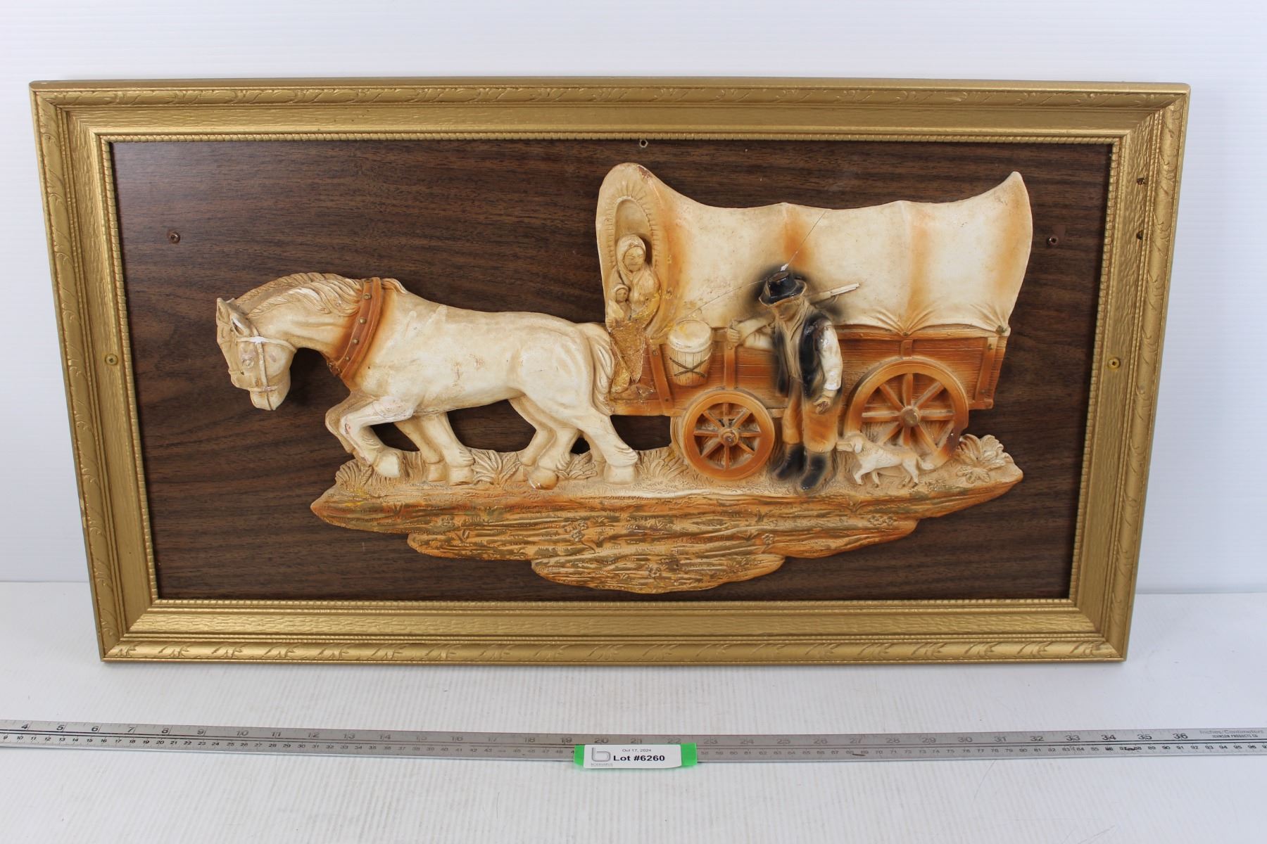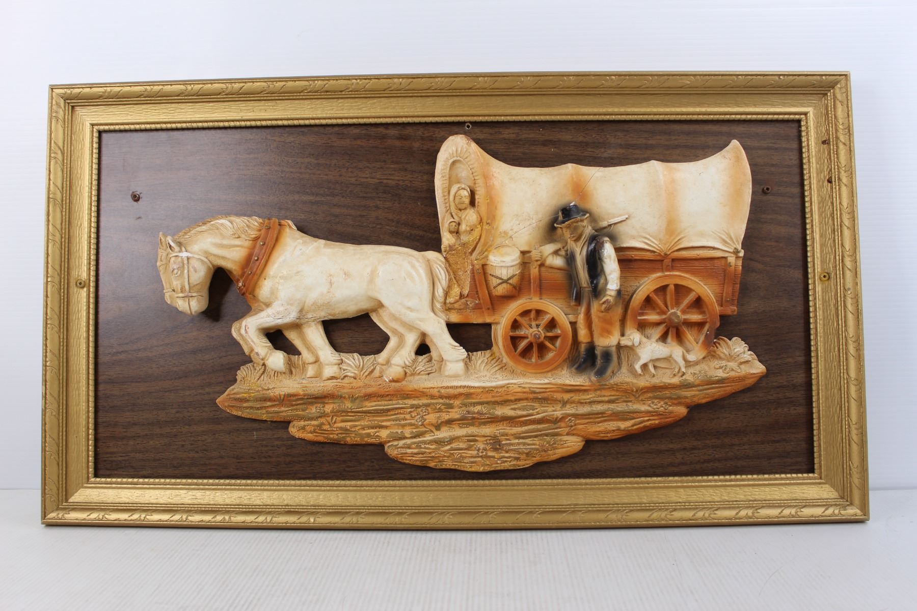 Vintage 3D Horse And Wagon Framed Decor- 31''x 17''