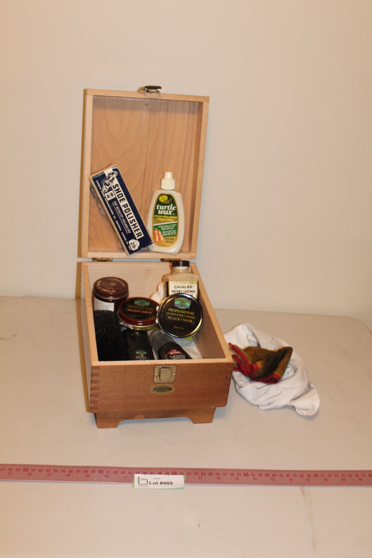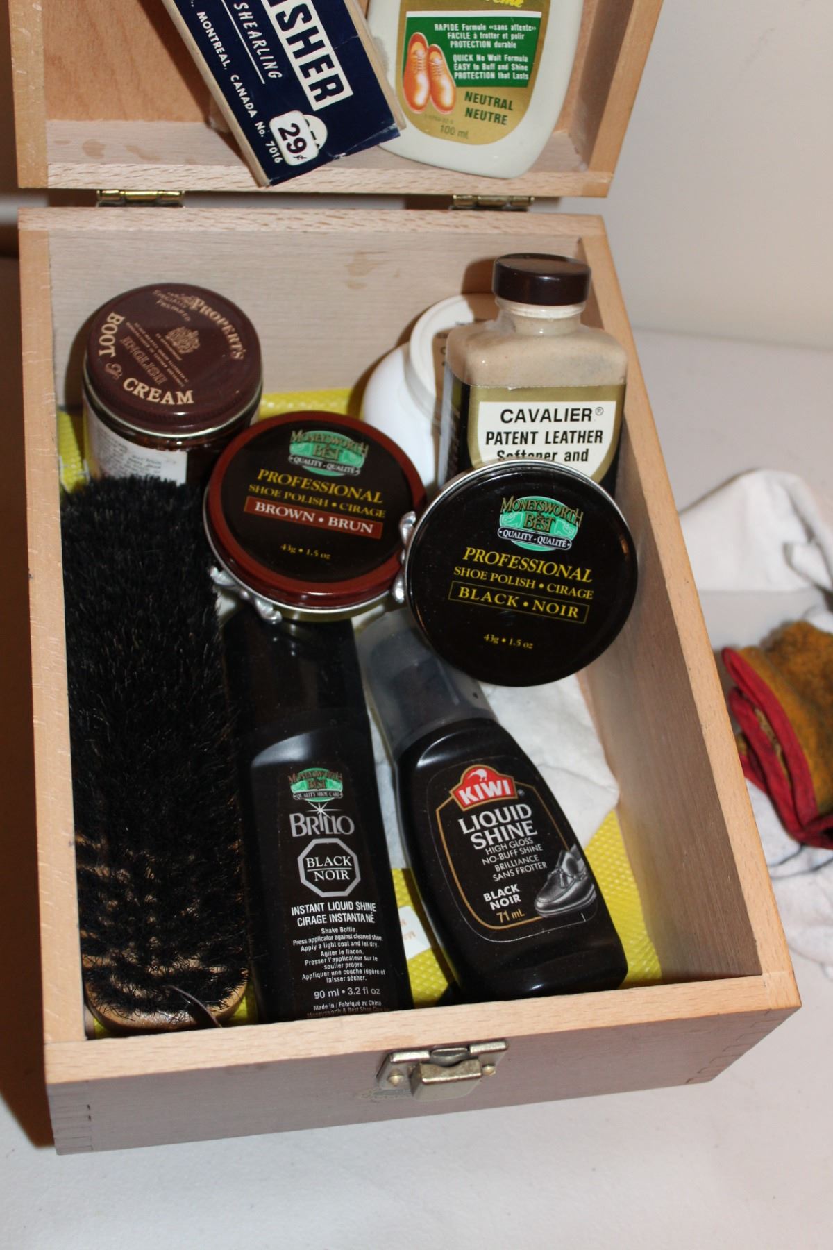 Vintage Amcrest Shoe Shine Box w/Polishes, Brush etc.