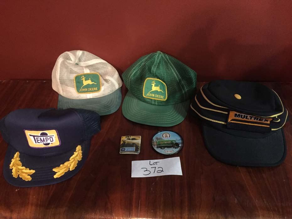 hats - Tempo, Multrex, 2-John Deere, co-op coaster, Ford matches