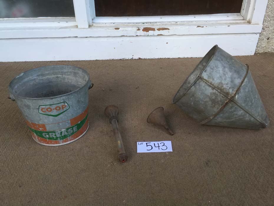 Co-op grease bucket, funnels, antifreeze checking tool