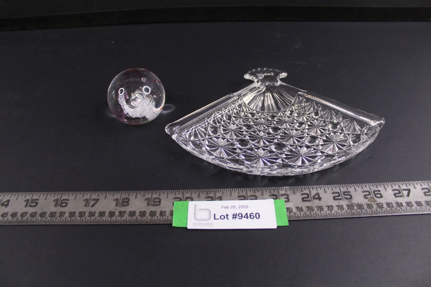 Vintage Avon Fancy Glass Platter, Glass Sphere Paper Weight
