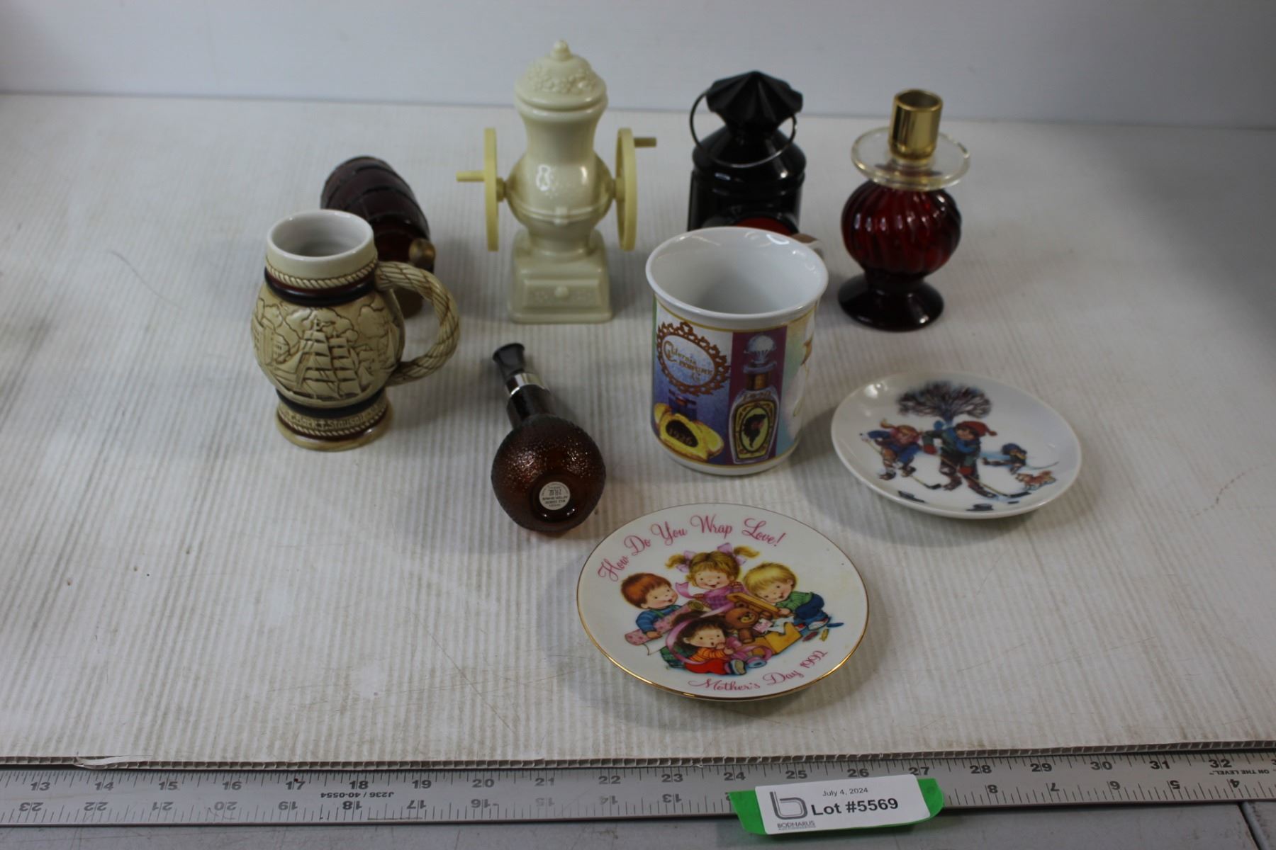 Vintage Avon Fragrance Bottles, Coffee Mug, (2) Small Plates