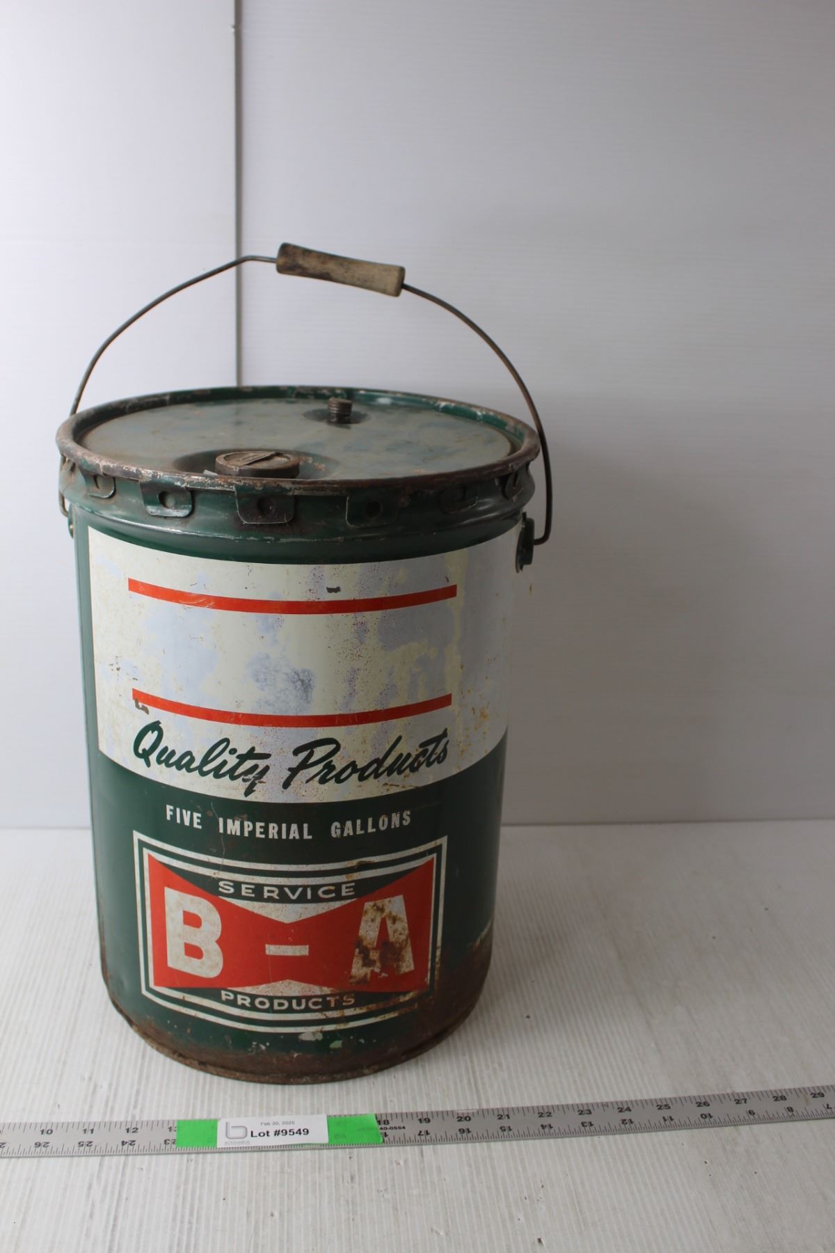 Vintage B-A Service Products Five Gallon Tin Pail 15.75" Tall
