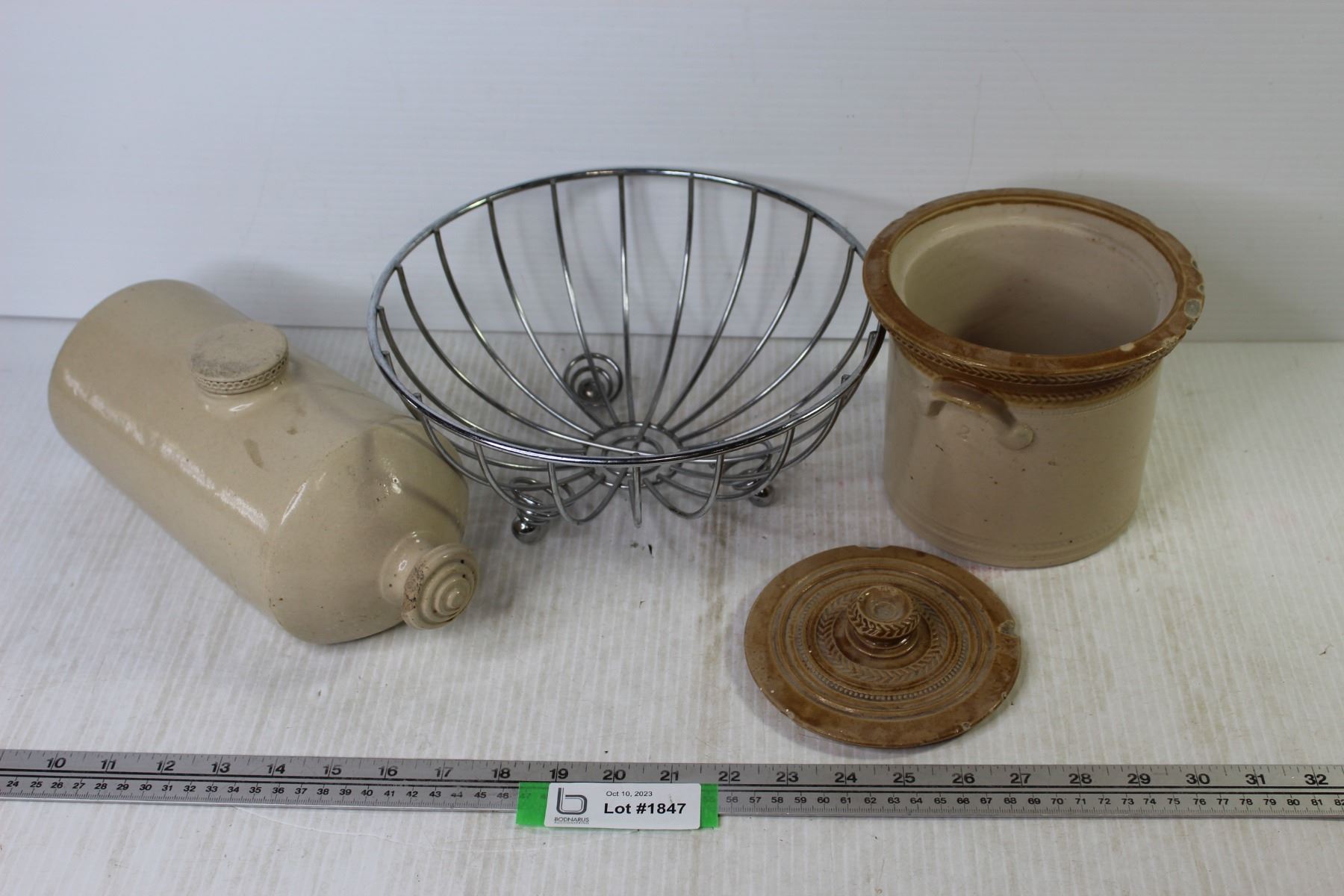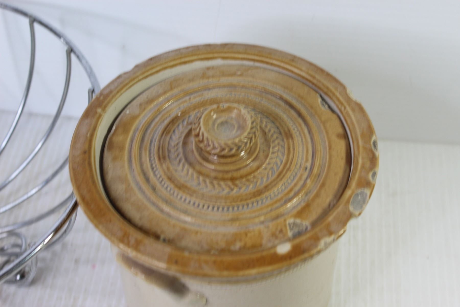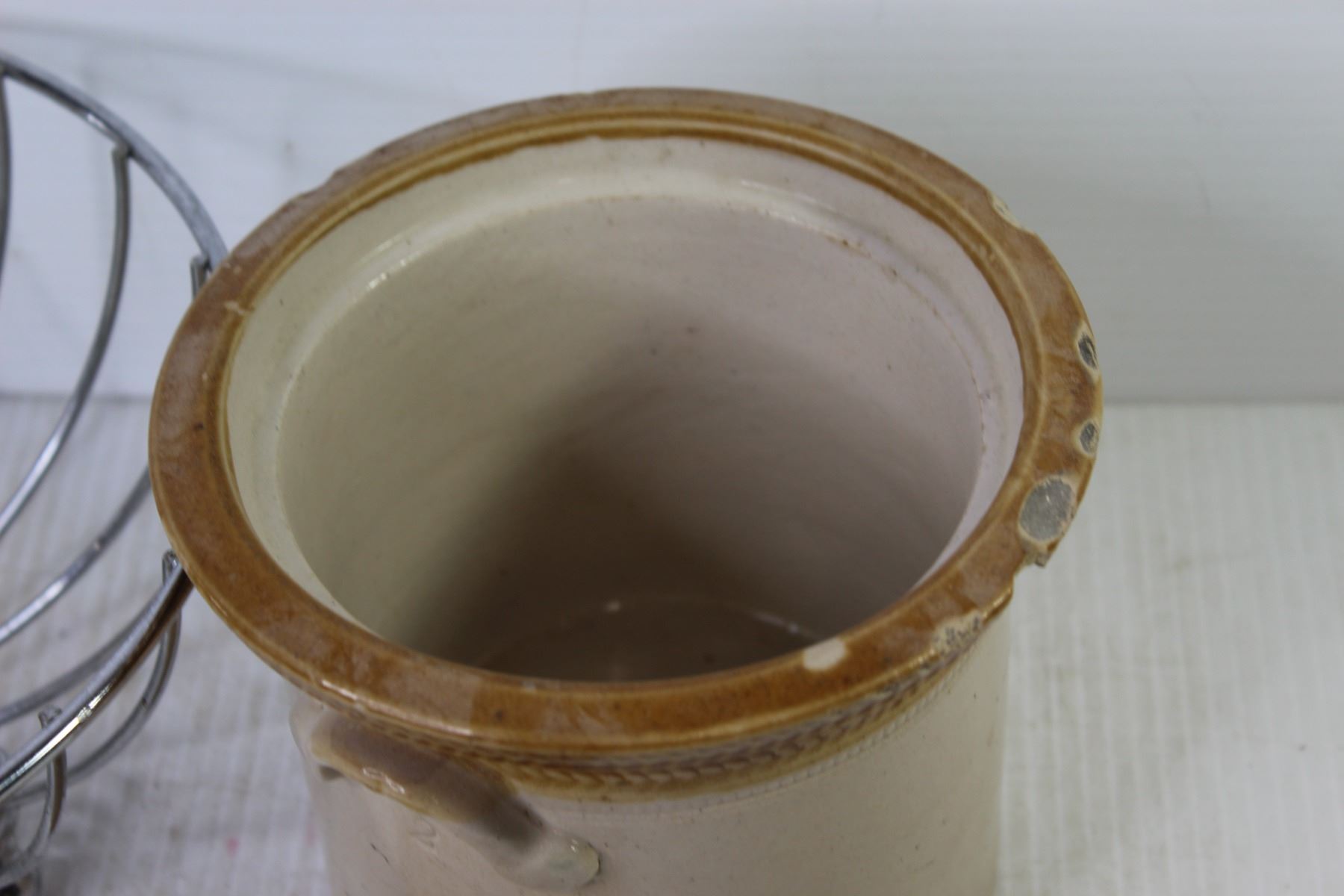 Vintage Bed Warmer (chipped) - Wire Basket - Crock Pot w/Lid (cracked)