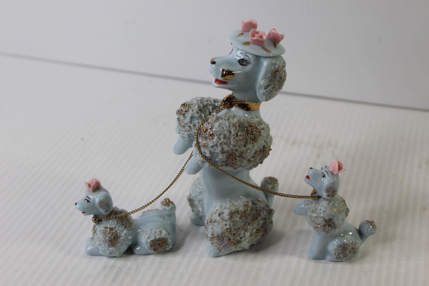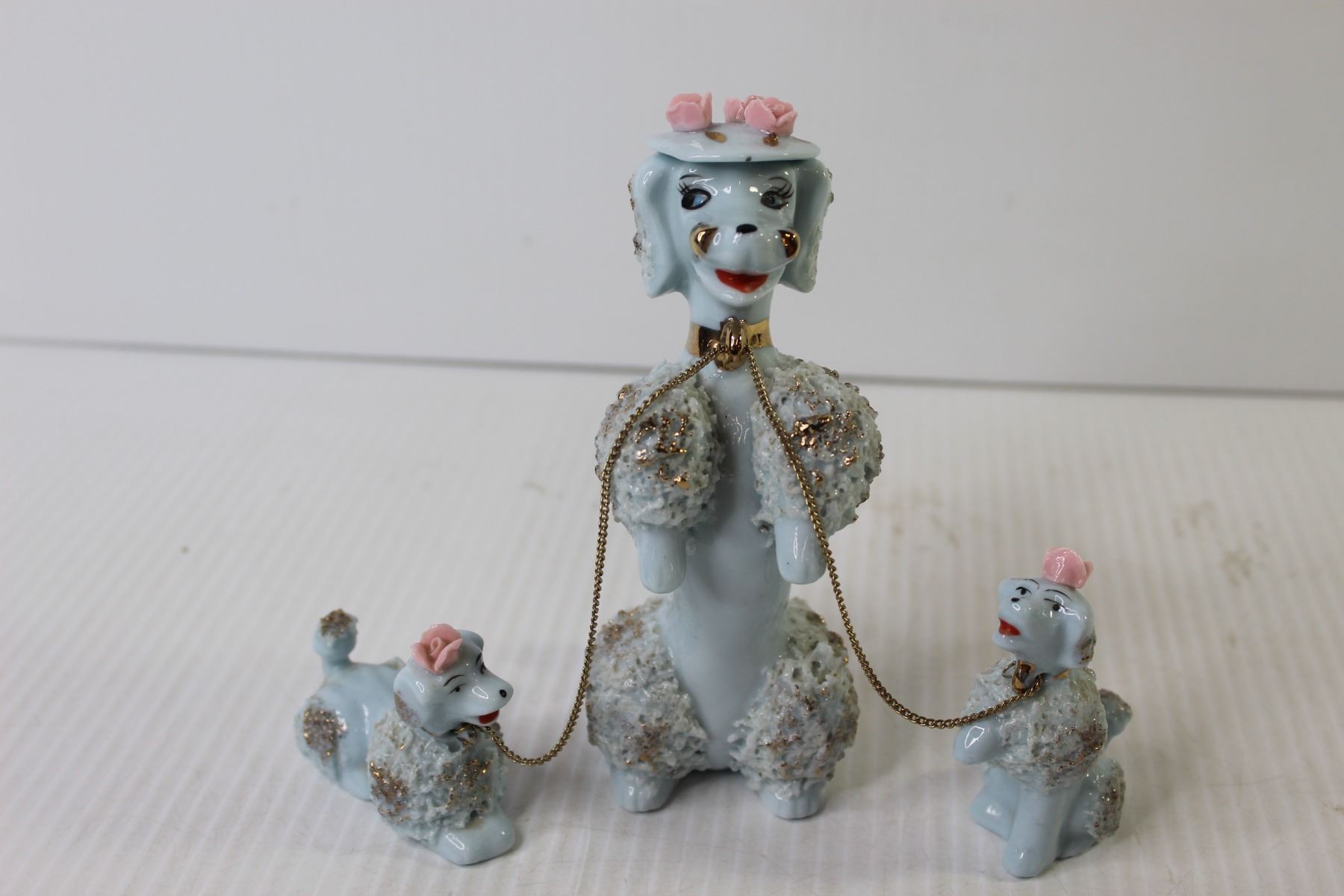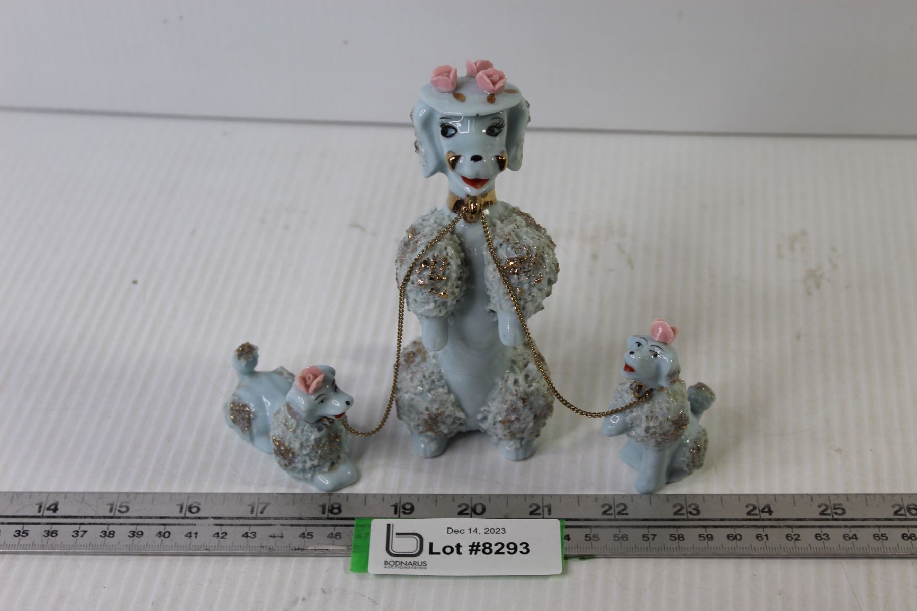 Vintage Blue Spaghetti Glass Poodles Set (no damages)