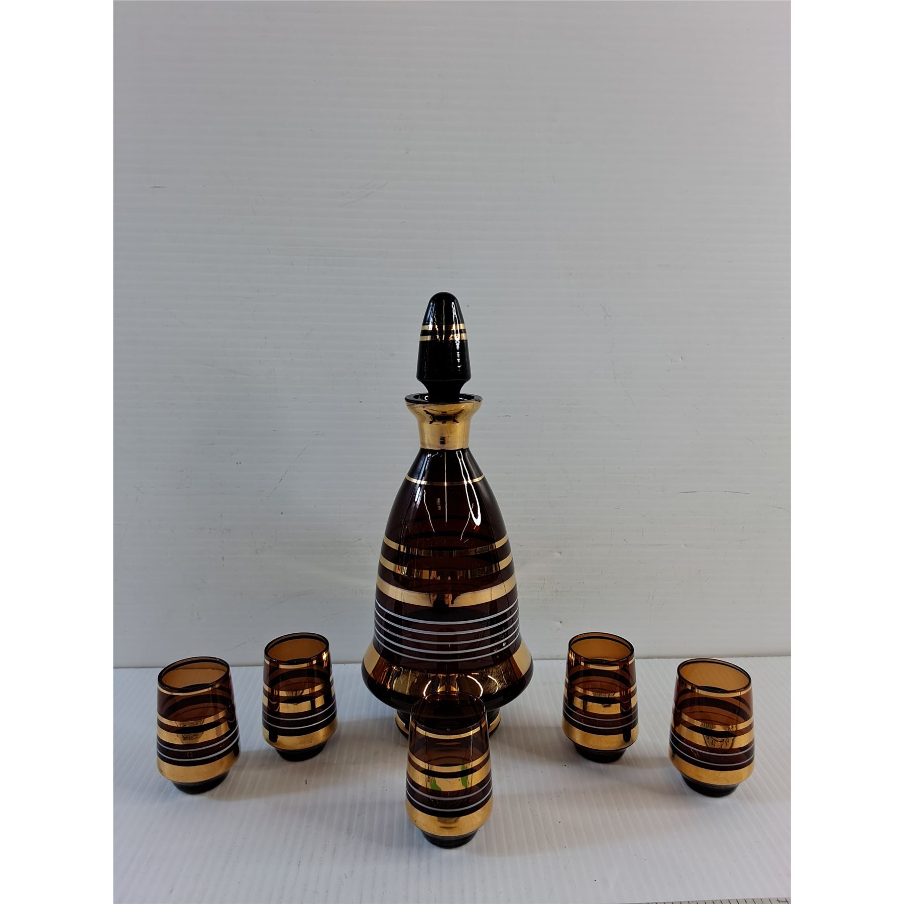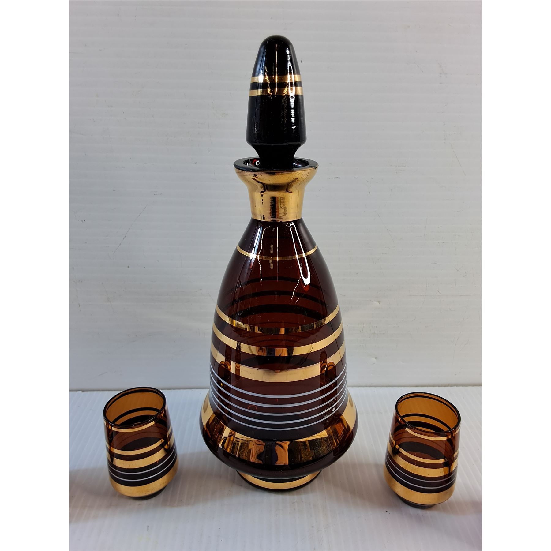 Vintage Bohemian Liquor Decanter & Liquor Shot Glasses Set