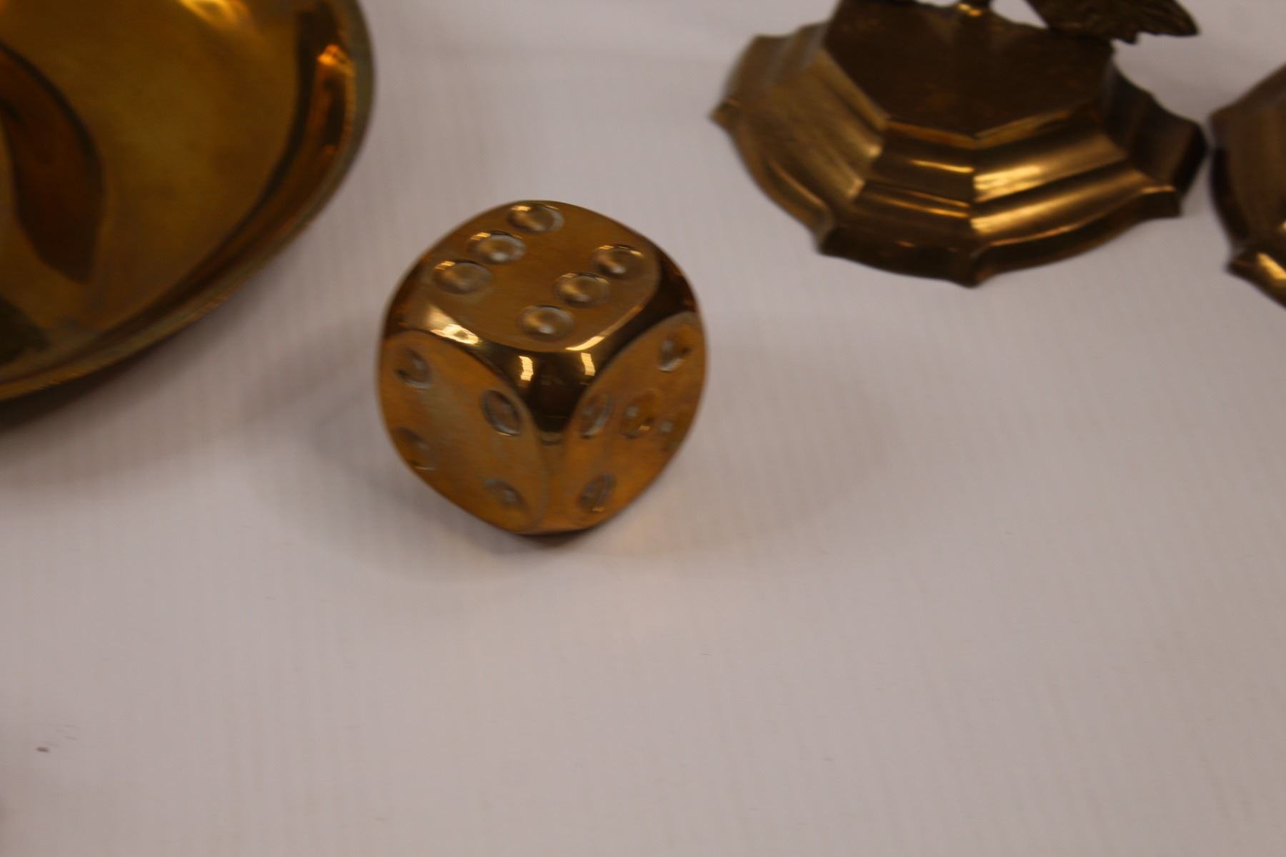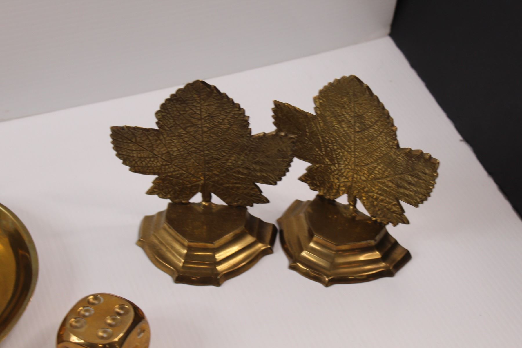 Vintage Brass Decor. - Candle Holders, Bookends, Divided Dish, Die