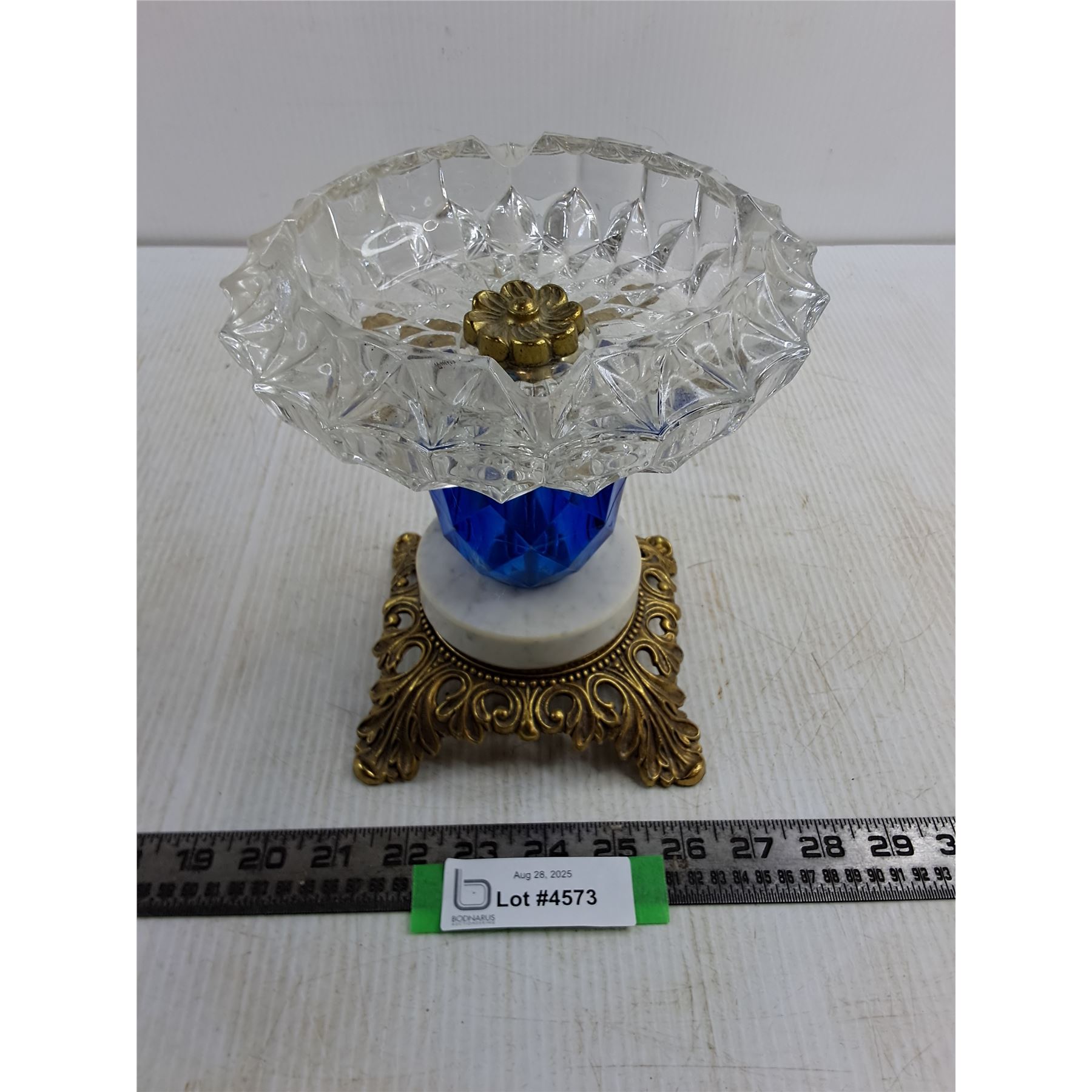 Vintage Brass/Marble/Glass Raised Ashtray - 8  Tall